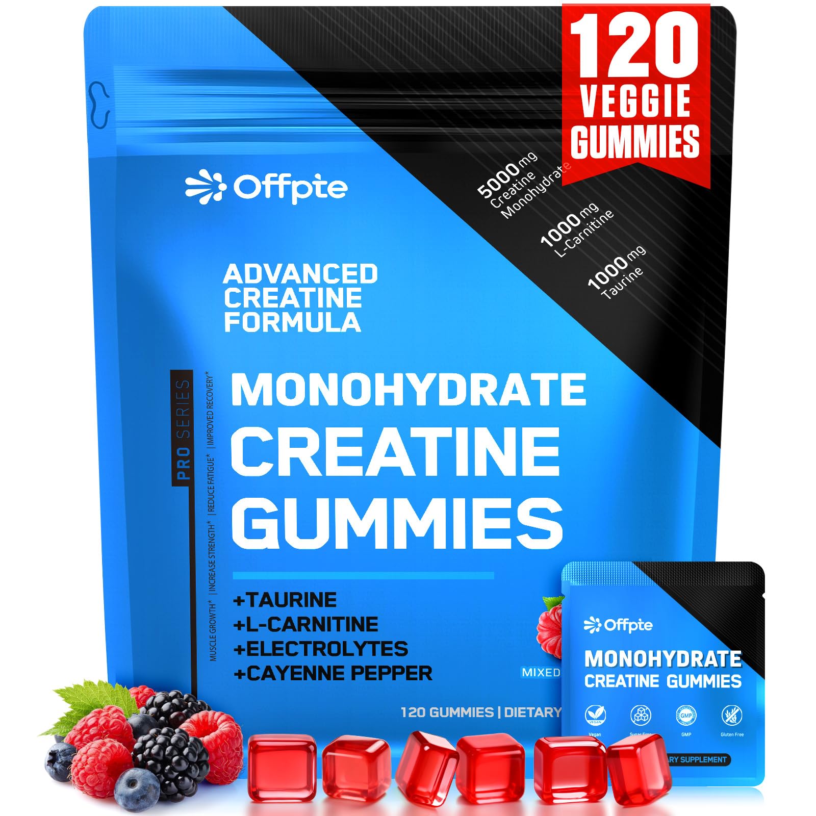 CLEAN,VEGAN,SUGAR FREE CREATINE: Manufactured and packaged in a GMP-certified facility, our creatin chews meet the highest quality standards, ensuring a safe, clean, and effective supplement every time. Easy-to-chew gummies that are soft, light, vegan, non-GMO, gluten-free, gelatin-free and digestion-friendly. No powders, no bloating, and no need to mix or shake. ENHANCED PREWORKOUT FOR WOMEN MEN: Pre Workout for men and women that enhances, replenishes and recovers your muscles and mind. Whether you're a weightlifter, runner, or everyday athlete, these gummies help you stay at your peak. Your body and muscles will get the necessary fuel they need to push harder, lift heavier, and recover quicker. TRAVEL-READY CREATINE PACKETS:Each daily serving (3 gummies) is hygienically sealed in its own creatine travel packets, locking in potency and flavor. With 40 creatine individual packets (120 gummies total), enjoy month-long freshness without bulk.Compact and travel-ready, they fit seamlessly into gym bags, luggage, or your desk drawer for instant fuel during hectic days. BENEFITS OF CREATINE: Creatine isn't just for muscles. While creatine provides rapid-burst energy, L-Carnitine works to sustain it. L-taurine helps maintain cell hydration, ensuring faster recovery, better muscle function.To complete the formula, we added Cayenne Pepper Green Tea work together to enhance your body's ability and boost your metabolism to use fat for fuel. Supports cognitive performance, focus,and mental clarity so you can power through work, workouts, and daily life. PREMIUM NATURAL INGREDIENTS - Each serving is packed with 5g of Creatine Monohydrate with taurine, l-carnitine, cayenne pepper, vitamin B6, and green tea extract. We've condensed all the benefits of traditional creatine supplements into a tasty, convenient form. The on-the-go ease of these gummies allow you to fuel your muscles anytime. Unleash your inner power and get your dose of creatine in just a few natural, delicious flavored creatine.