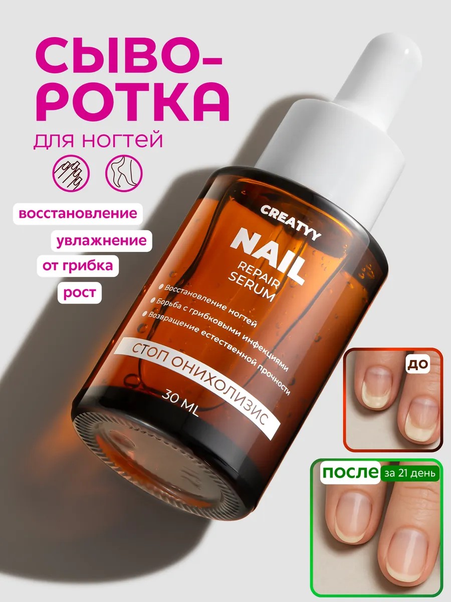 Сыворотка СТОП ОНИХОЛИЗИС для ногтей и кутикулы от CREATYY – это уникальное средство, созданное для укрепления и восстановления ваших ногтей после повреждений. Сыворотка NAIL от CREATYY станет незаменимым помощником при ломких и ослабленных ногтях. Сыворотка для роста ногтей стоп онихолизис помогает увлажнить кутикулу и способствует усилению роста ногтей при этом восстанавливая их и укрепляя ногтевую пластину. Сыворотка против грибка способствует профилактике восталений ногтей на рука и ногах, обеспечивая защиту от ломкости. Предупреждает истончение пластины ногтя, укрепляя его структуру на клеточном уровне.