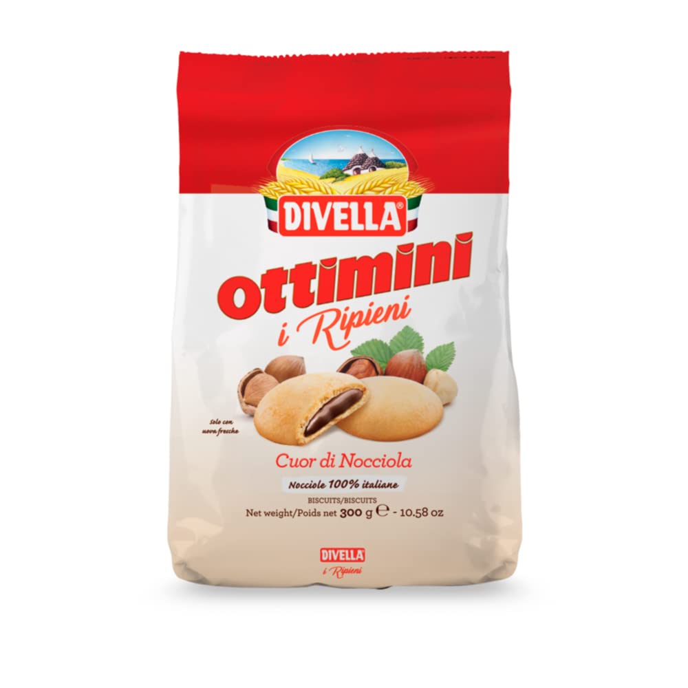 Ottimini "I Stuffed" hazelnut cookies will win you over, and you won't be able to resist their irresistible temptation! They're hidden inside a treasure trove waiting to be discovered and are perfect any time of day. COOKIE SHORTBREAD COOKIE Filled with hazelnut cream (28 ) - Ingredients: wheat flour, hazelnut cream 28 (sugar, vegetable oil (paps), low-fat cocoa powder, hazelnuts 8 , emulsifier, sunflower lecithin, flavorings), sunflower oil, sugar, fresh eggs 5 , whole milk powder, syrup, medium cooking butter (sodium bicarbonate, ammonium bicarbonate), flavorings, salt. May contain traces of soy and almonds. The highlighted ingredients may cause allergies and intolerances. Nutritional values: Energy 2124.7 kJ 507.7 kcal - Fat 25.40 g - Fatty acids: 3.20 g - Carbohydrate: 62.40 g - Sugars: 31.5 g - Protein: 23 g - Salt: 0.25 g INGREDIENTS Wheat flour, hazelnut cream 28 (sugar, vegetable oil (rapeseed, low-fat cocoa powder, walnuts 8 , emulsifier, sunflower lecithin, flavorings), sunflower oil, sugar, fresh eggs 5 , whole milk powder, glucose syrup, butter, leavening (sodium bicarbonate, ammonium carbonate), flavorings, salt. May contain traces of soy and almonds.Divella i Ripieni Cuor di Nocciola Biscotti Ripieni con Crema alla Nocciola Biscotti Ripieni con Crema alla Nocciola biscuit rempli avec crème noisette 300 gDESCRIPTION DU PRODUIT DESCRIPTION DU PRODUIT Les biscuits Ottimini « I Stuffed » aux noisettes vont vous conquérir et vous ne pourrez pas résister à votre tentation sauvage ! Ils se cachent dans un trésor à découvrir et sont parfaits à tout moment de la journée. COOKIE SHORTBREAD COOKIE Rempli de crème de noisettes (28 ) - Ingrédients : farine de blé, crème de noisettes 28 (sucre, huile végétale (paps), poudre de cacao faible en graisse, noisettes 8 , émulsifiant, llécithine de tournesol, arômes), huile de tournesol, sucre, œufs frais 5 , poudre de lait entier, sirop , sirop . Beurre de cuisson Moyen (bicarbonate de sodium, bicarbonate d'ammonium), arômes, sel. Il peut contenir des traces de soja et d'amandes. Les ingrédients mis en valeur peuvent provoquer des allergies et des intolérances. Valeurs nutritionnelles : énergétique 2124,7 kJ 507,7 kCal - Graisse 25,40 g - Avance des acides gras gras : 3,20 g - Hydate de carbone : 62,40 g - Sucre : 31,5 g - Protéine. 23 g FFFFAzern 2,28 g de sel 0,25 g. INGRÉDIENTS farine de blé, crème de noisettes 28 (sucre, huile végétale (colza, poudre de cacao faible en graisse, noix 8 , émulsifiant, lécithine de tournesol, arômes), huile de tournesol, sucre, œufs frais 5 , poudre de lait entier, sirop de glucose, beurre, levure (bicarbonate de sodium, carbonate d'ammonium), arômes, sel. Il peut contenir des traces de soja et d'amandes.