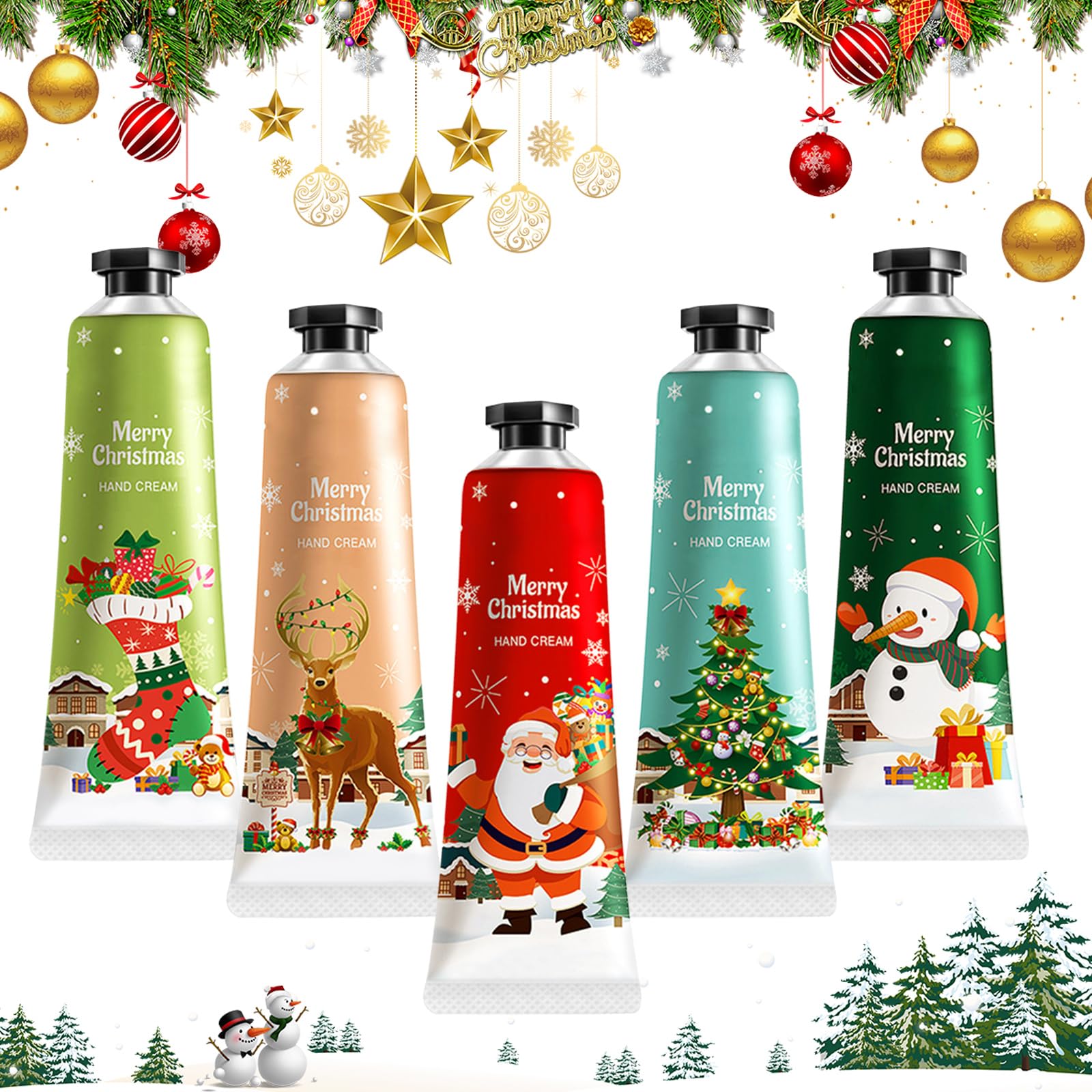 Creme Main Noël,Crèmes pour les Mains pour Femme,Mini Crèmes pour les Mains,Crème Soin pour la Peau Sèche,Cadeau Noël (Moose, 5 pcs) Moose 5 pcs