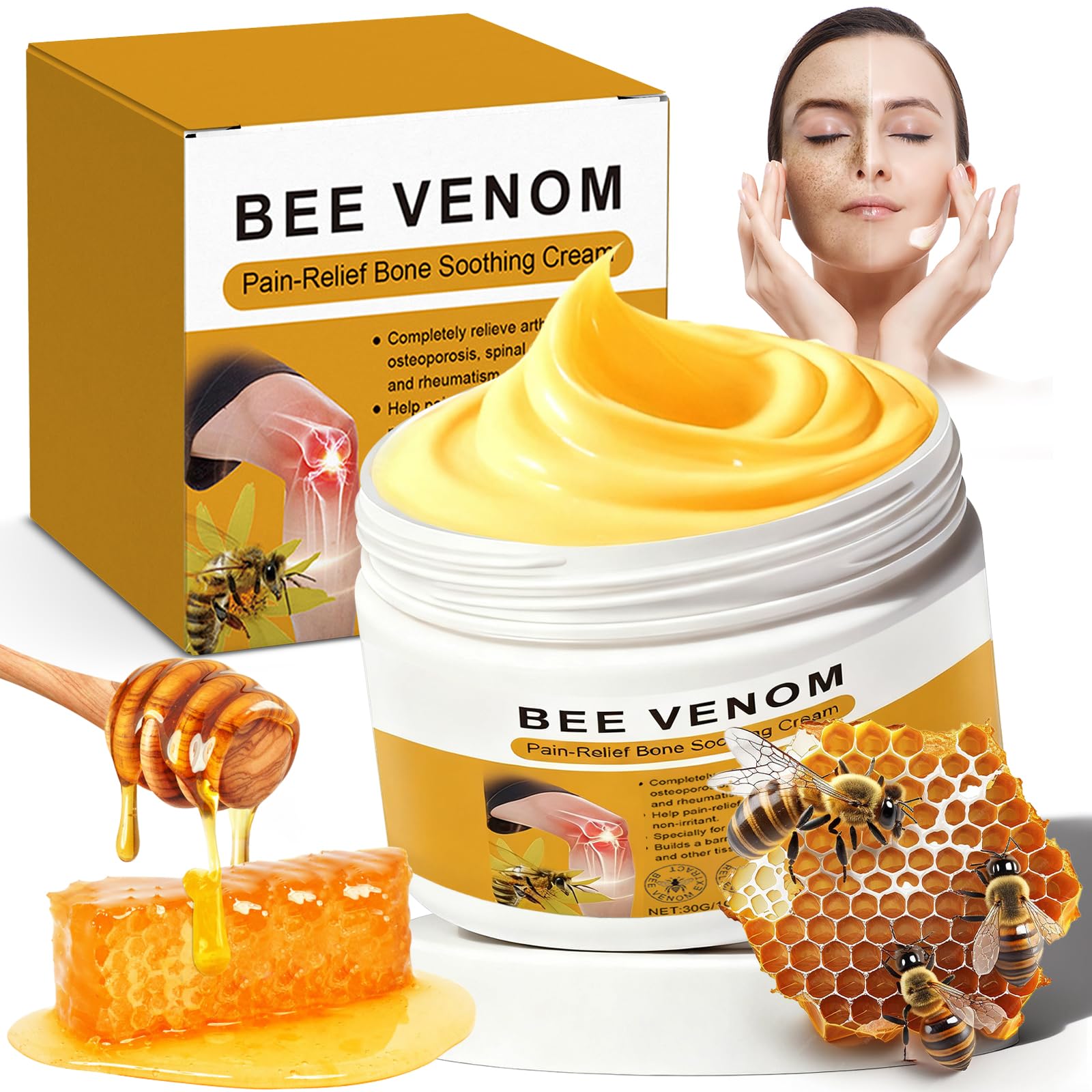 Creme Venin D'Abeille,CrèMe Avec Venin D'Abeille Et Curcuma,Gel Hydratant Et Doux Pour Le Cou,Le Dos,La Taille Et Les Mains,CrèMe De Soin Quotidienne