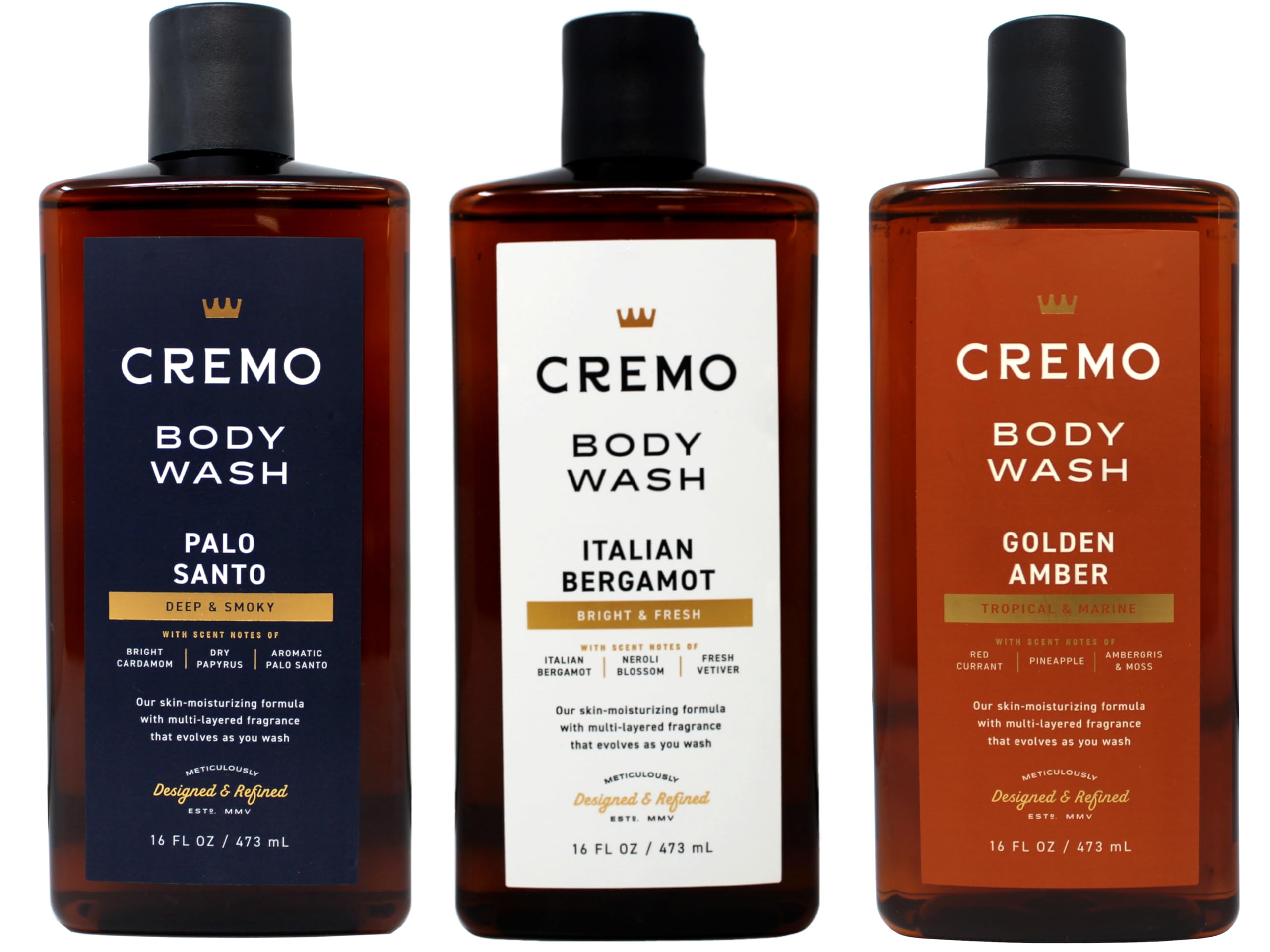 Cremo Body Wash Set 16 FL OZ - Palo Santo Italian Bergamot Golden Amber Skin-Moisturizing Formula 16 FL OZ Each