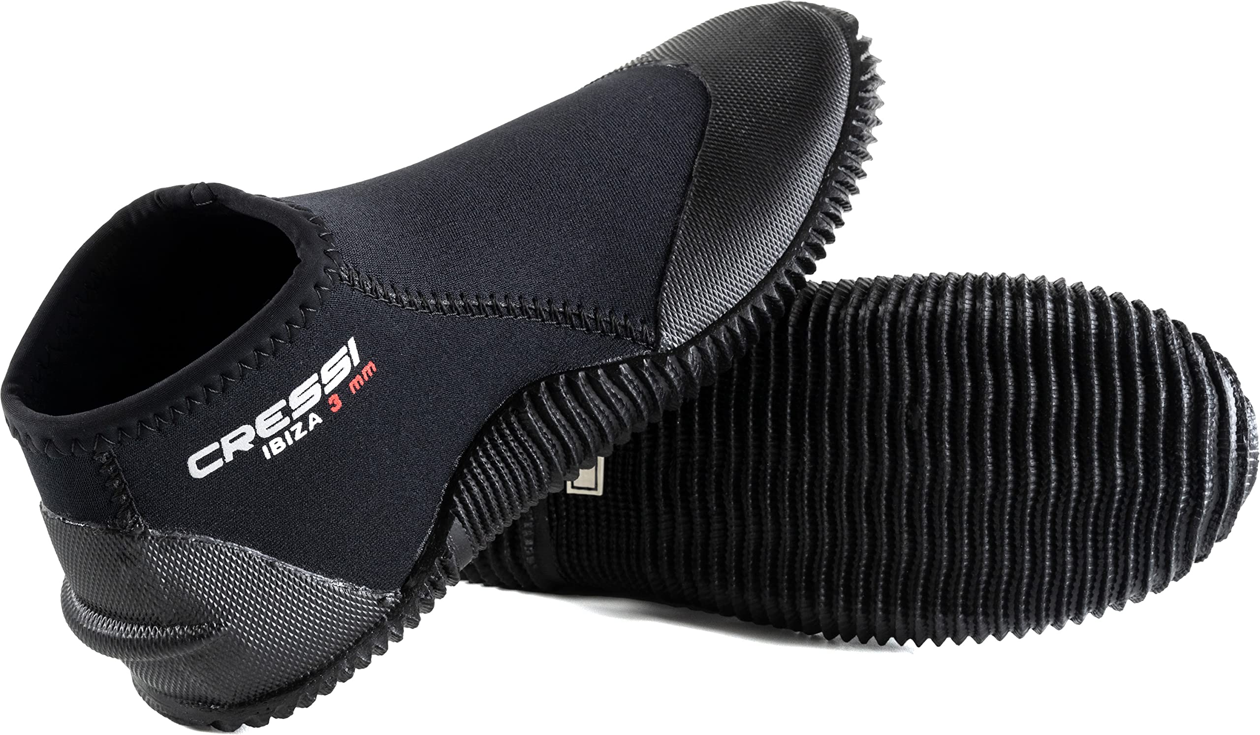 The Ibiza boots are designed by Cressi and made in China. Cressi is a brand pioneer in Scuba Diving, Snorkeling and Swimming equipment. Rinse with clean water after use a let dry. A strong non-slip molding covers the entire sole. The back of the heel has a special design that fits perfectly with open heel fins for scuba diving. The small boss is used to prevent the slipping of the fins strap. Made with Super Elastic Neoprene for best comfort within the sole, it is built to provide extra comfort, and is also ultra durable. The Ibiza 3mm are lightweight boots ideal for outdoor sports and travel.