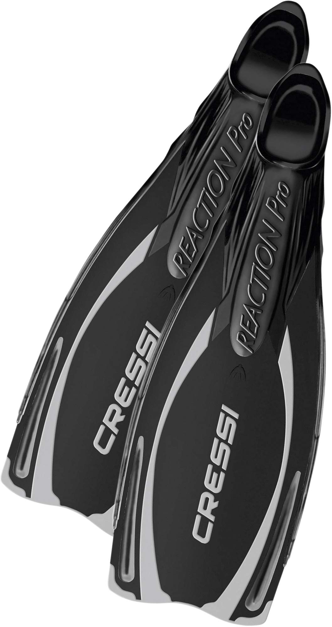 Sport type: Outdoor Lifestyle. Care instructions: Rinse with clear water after use and let dry. The Reaction Pro is developed and manufactured in Italy by Cressi, a brand pioneer in scuba diving, snorkeling, and swimming equipment since 1946. The foot pocket is beneath the blade for add power and efficiency. Blade originates from the upper part of the foot pocket increg by 20% the useful surface area compared to a traditional fin of the same length. It is made using a patented three material molding process to provide comfort and suppleness in the foot area and strength and rigidity in the heel and blade area. A full foot pocket style fin, with a long blade and built in runners to effectively direct water flow down the blade. The Reaction Pro are non-vented fins with full foot pocket designed for scuba diving, snorkeling, recreation.