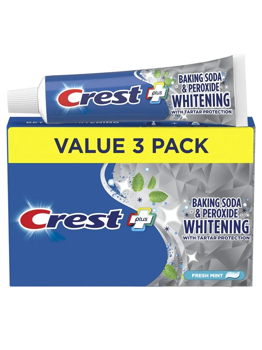 This set includes 3 tubes of Crest Baking Soda & Peroxide Whitening with Tartar Protection toothpaste, 161 grams each. New for 2024. The updated whitening toothpaste Crest Baking Soda & Peroxide Whitening with Tartar Protection New 2024, a new formula with double the amount of hydrogen peroxide. Removes up to 90% of surface stains on par with whitening toothpastes from the Crest 3D White series. Crest Baking Soda & Peroxide Whitening with Tartar Protection whitening toothpaste was developed by the renowned company Procter & Gamble, which specializes in the production of various hygiene products. It has a whitening effect and allows you to make the enamel several shades lighter. It contains soda and peroxide. These components help give teeth a snow-white shade. They also help combat tartar, plaque, and bad breath. After a hygiene procedure, your teeth will be reliably protected from cavities, and a pleasant, refreshing mint flavor will remain in your mouth. The manufacturer claims that regular use of this toothpaste will completely remove surface stains. The ingredients in the toothpaste penetrate deep into the structure of the teeth, restoring their natural whiteness. Using this hygiene product, you can count on gentle and effective enamel whitening, long-lasting fresh breath, and enhanced anti-caries protection. To achieve the best possible results, you should thoroughly brush your teeth after every meal or at least twice a day. Anyone can evaluate the effectiveness of Crest Baking Soda & Peroxide. The price of this whitening toothpaste is reasonable, making it accessible to a wide range of consumers.