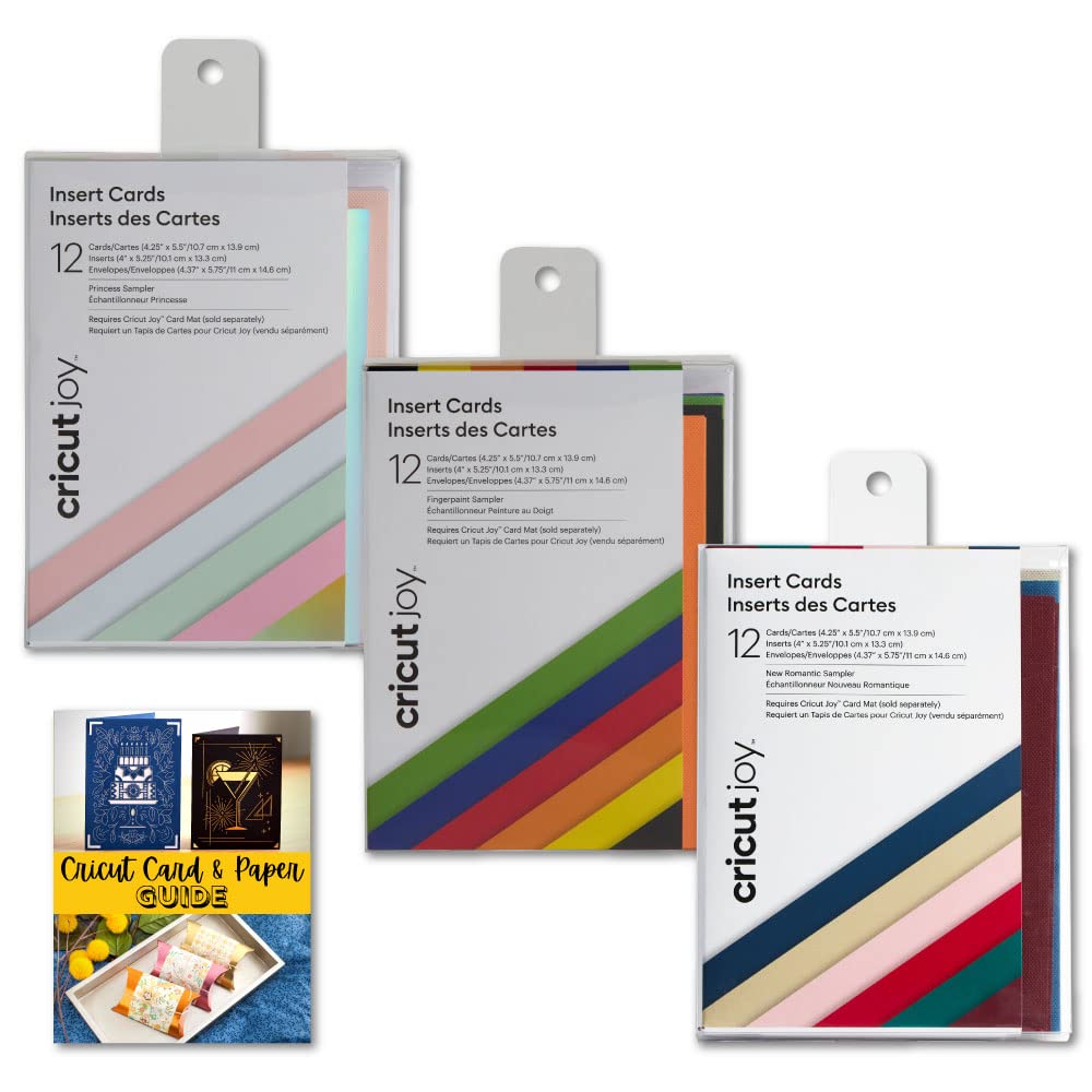 Compatible with Cricut Joy Machine only. Card Mat is required (sold separately). BUNDLE INCLUDES: (1) Cricut Joy Insert Cards, Princess Sampler, 12Ct, (1) Cricut Joy Insert Cards, Fingerpaints Sampler, 12Ct, (1) Cricut Joy Insert Cards, New Romantic Sampler, 12Ct, (1) Digital eBook, Cricut Smart Materials: All You Need to Know (will be emailed as printed copies are not available). DIGITAL BOOK: Cricut Smart Materials: All You Need to Know, is an electronic format eBook that is perfect for any Cricut Joy user. The DIY tutorials and project inspiration will prepare you to create your first project and beyond! Link to access the Cricut Smart Materials eBook will be emailed (printed copies are not available). EASY TO USE: Create a design from scratch, or select from hundreds of ready-to-make projects from Design Space. Perfect for Birthday Cards, Party Invites, Thank You Cards or let that special someone know you are thinking of them. CRICUT JOY CARDS: These sampler sets of DIY Insert Cards allow you to create unique and personal designs with a look and feel more professional than even the cards off the rack. Every cut will reveal the complementary hue of the insert inside.