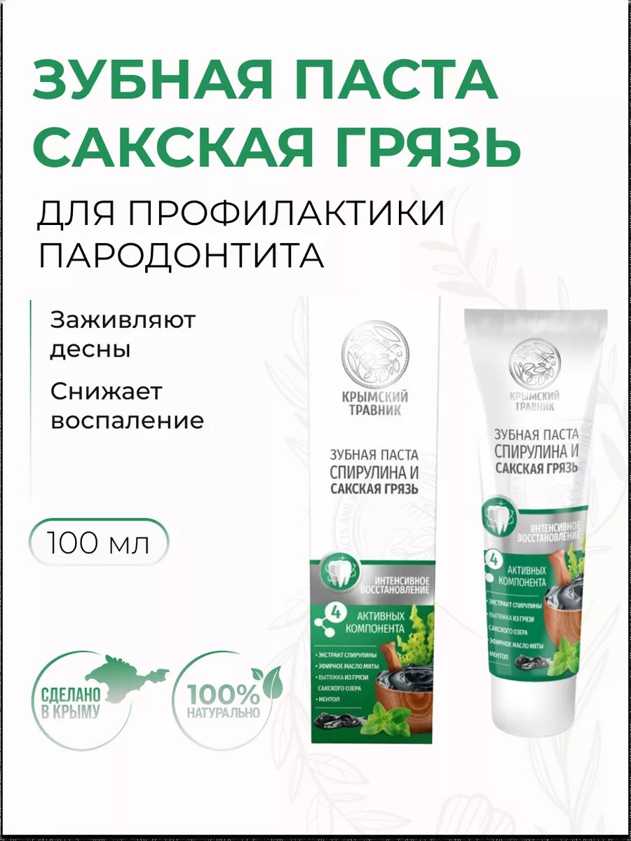 крымский травник Зубная паста Спирулина и сакская грязь для зубов и десен