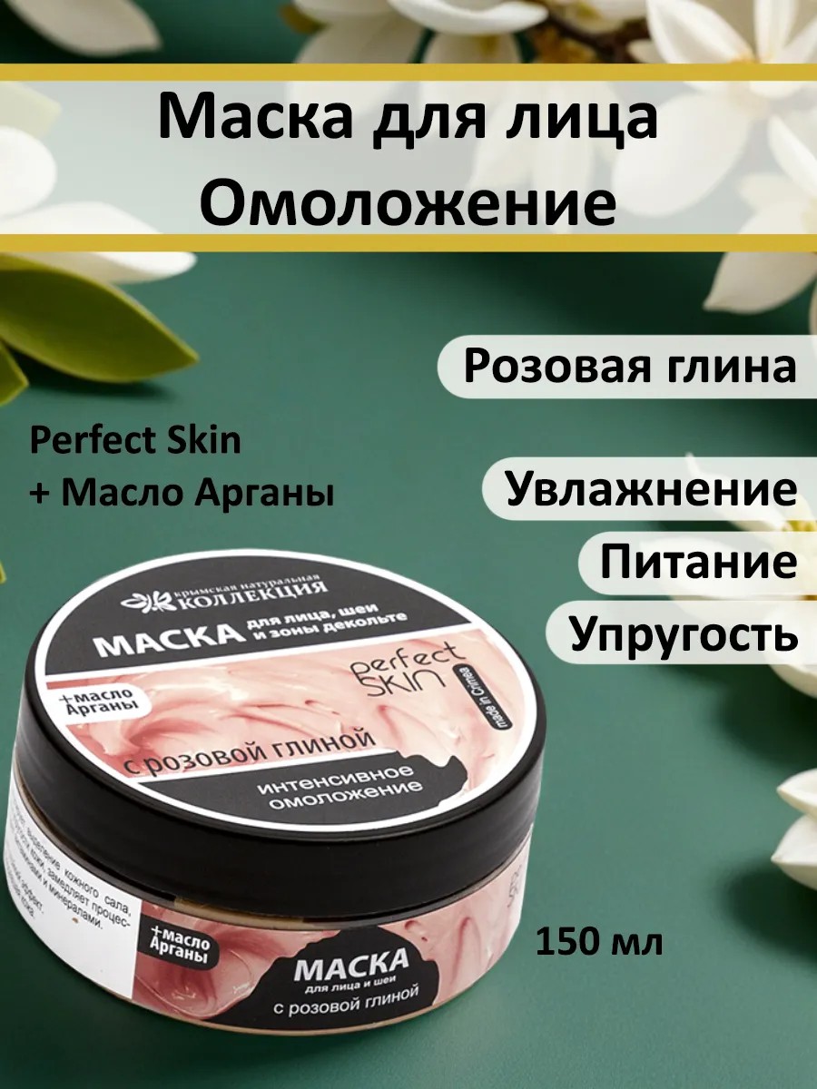 Маска для лица, шеи и зоны декольте с розовой глиной + масло Арганы. Интенсивное омоложение.