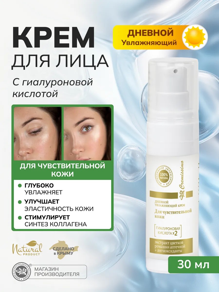 Подарите незабываемый подарок женщине, полный нежности подарок девушке, самый тёплый подарок маме, приятный подарок коллегам, уютный подарок бабушке и душевный подарок сестре! Крем для лица увлажняющий с гиалуроновой кислотой для чувствительной кожи дневной станет вашим идеальным помощником в заботе о внешности и коже. Благодаря гиалуроновой кислоте, крем поддерживает гидролипидный баланс, что важно для ежедневного ухода за кожей лица.