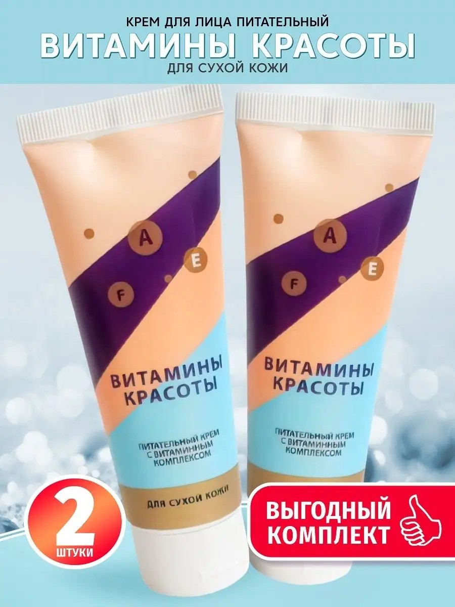 Комплект крем для лица "Витамины красоты" от Крымской Розы предназначен для ухода за сухой кожей. В состав входят такие активные компоненты, как витамины A, E, F, масло зародышей пшеницы и экстракт шиповника, которые способствуют увлажнению, питанию и восстановлению кожи.