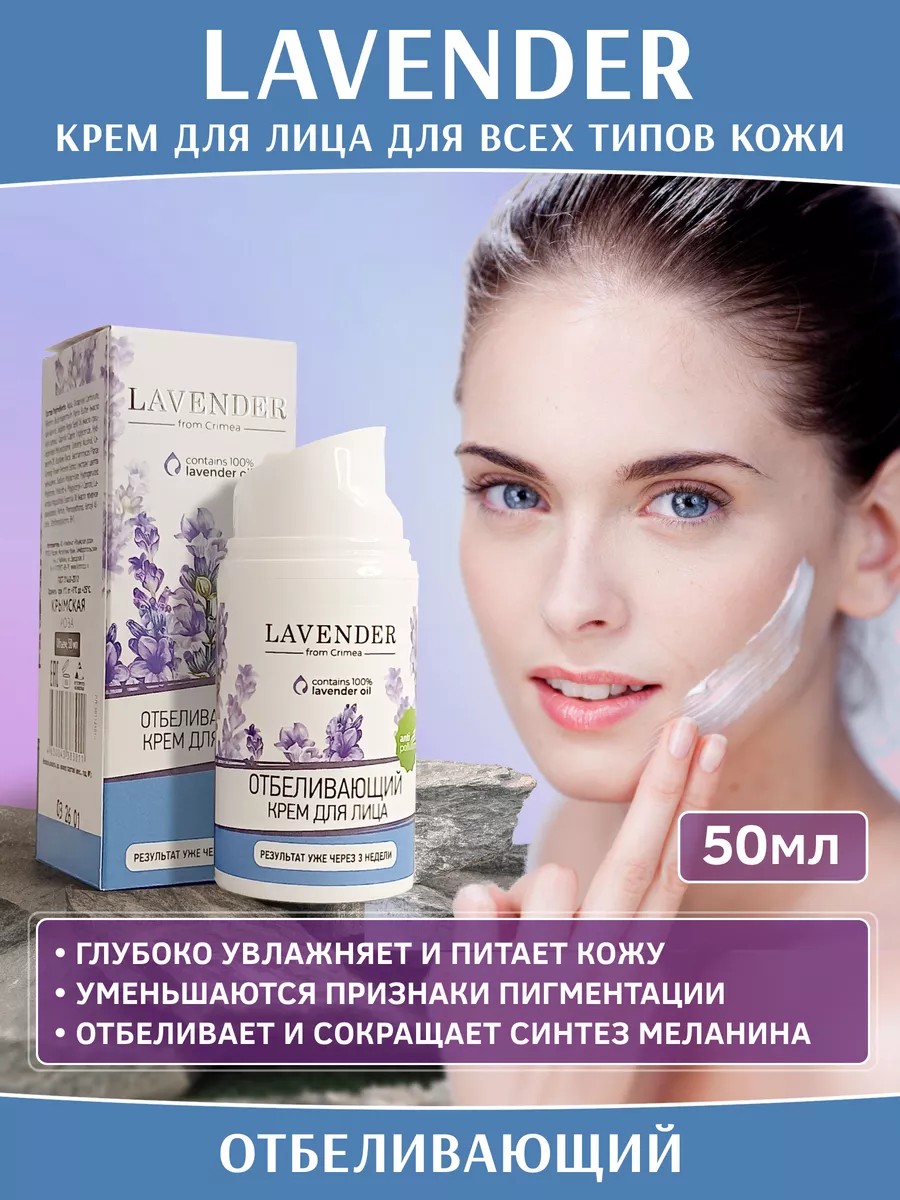 Крымская Роза Крем для лица Лаванда Отбеливающий для всех типов кожи, 50мл
