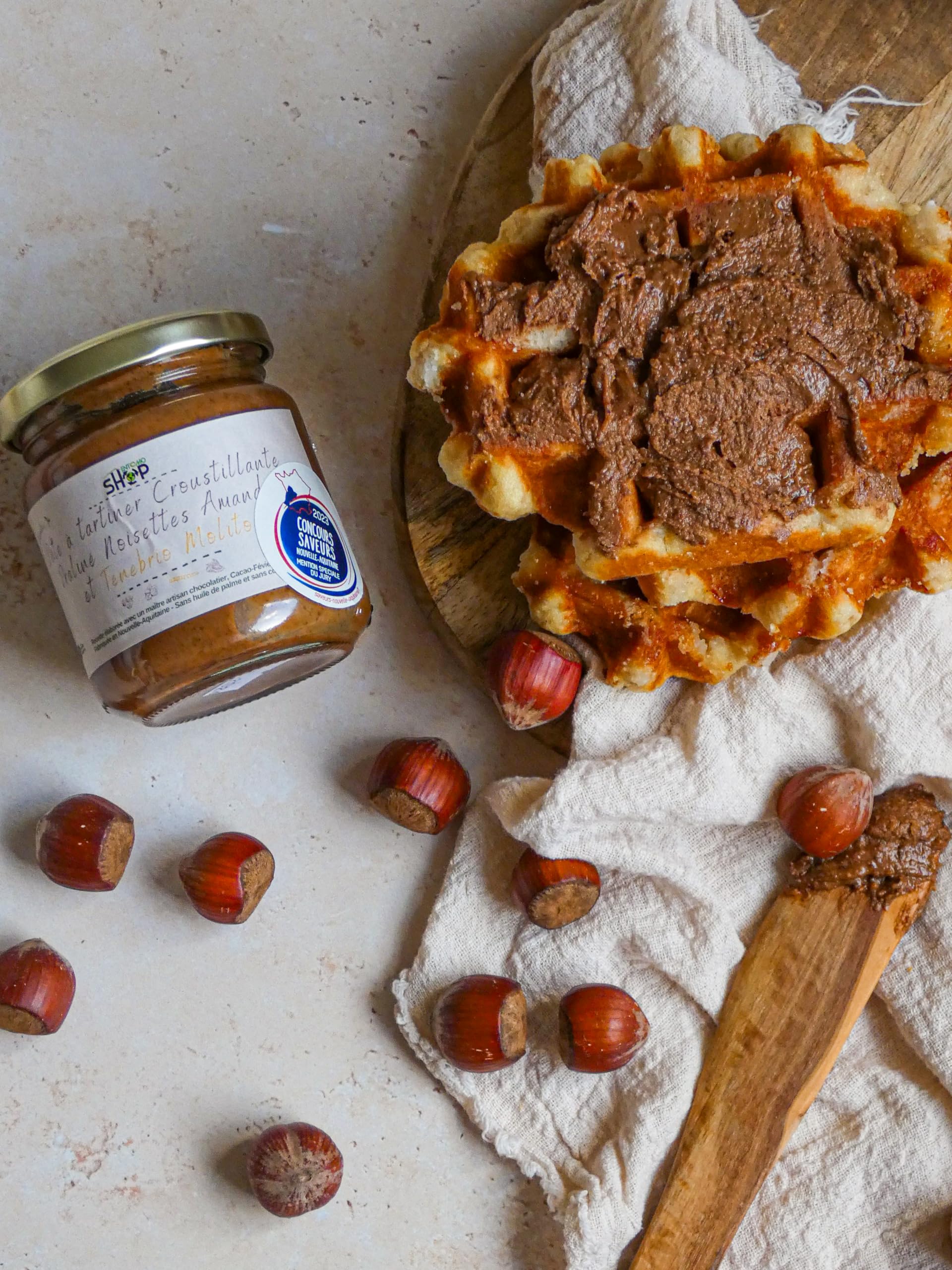 Developed by ENTOMOSHOP in Gironde, in partnership with a fava chocolate confectioner elected best chocolatier in the world in 2022 for its low-temperature dark chocolate bar! All the know-how of a honey chocolate confectioner to enhance hazelnuts, almonds and mealworm into a crispy and succulent spread! Hazelnuts from L o t – e t – G a r o n n e Yum, crispy hazelnut, almond and Tenebrio Molitor praline spread! The crispy spread with praline and Tenebrio Molitor was developed in New Aquitaine by Entomoshop and a renowned master chocolatier, honeypot and confectioner to reveal the know-how of our craftsman and enhance the mealworm! The Tenebrio spread from Entomoshop is a delicious sweet preparation made from hazelnuts, almonds, sugar, milk chocolate and the edible insect: the mealworm. It is creamy and pleasantly sweet, with a rich flavor of hazelnuts and almonds. Why test and adopt the crispy spread with praline and mealworms (Tenebrio Molitor)? The incorporation of Tenebrio Molitor in a praline spread is an innovative way to add an alternative animal source of protein. This gives a unique dimension to the spread, giving it a subtle flavor and a crunchy texture. The combination of sweet praline and the nutty notes of Tenebrio Molitor will surprise you! Molitor? Praline spread is ideal as a topping for pancakes, waffles, brioches or even breakfast toast! It can also be used as an ingredient in baking, adding a delicious flavor to cakes, cookies and chocolates: Source of protein: Tenebrio Molitor is rich in protein, making it an interesting alternative to protein sources. more traditional foods such as meat or dairy products. Incorporating Tenebrio Molitor into the praline spread increases its protein content, which can be beneficial for building and repairing muscle tissue. Nutrient intake: Tenebrio Molitor also contains vitamins, minerals and essential fatty acids. By combining these nutrients with the benefits of hazelnuts or almonds used in the praline, the spread can be a source of varied and balanced nutrients. Environmental sustainability: Insects such as Tenebrio molitor are considered a sustainable and ecological alternative to conventional livestock farming. They obtain fewer resources in terms of water, space and food to be raised, which can help reduce the ecological footprint associated with food production Composition: Sugar, hazelnuts, almonds, milk chocolate, edible insects Tenebrio Molitor 10 Nutritional values per 100g Energy 2276. kJ 546 kcal Fats 33 g Including saturated FA 9.5 g Carbohydrates 46 g Including sugars 44 g Proteins 15 g Fibers 4.3 g Salt 0.30 g Allergen risks: Hazelnuts, almonds, milk, molluscs, mites, crustaceans INGREDIENTS Sugar, hazelnuts, almonds, milk chocolate, edible insects Tenebrio Molitor 10All the expertise of a chocolate confectioner to enhance hazelnuts, almonds and mealworm in a crispy and succulent spread. Elaborée par ENTOMOSHOP en Gironde, en partenariat avec un confiseur chocolatier févier élu meilleur chocolatier du monde en 2022 pour sa tablette de chocolat noir basse température ! Tout le savoir-faire d'un confiseur chocolatier févier pour sublimer les noisettes, les amandes et le ténébrion meunier en pâte à tartiner croustillante et succulente ! Noisettes du L o t – e t – G a r o n n e Miam de la pâte à tartiner croustillante au praliné Noisettes Amandes et Tenebrio Molitor ! La pâte à tartiner croustillante au praliné et Tenebrio Molitor a été élaborée en Nouvelle-Aquitaine par Entomoshop et un maître chocolatier, févier et confiseur renommé pour révéler le savoir faire de notre artisan et sublimer le ténébrion meunier ! La pâte à tartiner Tenebrio d"Entomoshop est une délicieuse préparation sucrée à base de noisettes, d'amandes, de sucre, de chocolat au lait et de l'insecte comestible : le ténébrion meunier. Elle est onctueuse et agréablement sucrée, avec une saveur riche de noisettes et d'amandes. Pourquoi tester et adopter la pâte à tartiner croustillante au praliné et aux ténébrions meuniers (Tenebrio Molitor) ? L'incorporation de Tenebrio Molitor dans une pâte à tartiner au praliné est une manière innovante d'ajouter une source de protéines d'origine animale alternative. Cela donne une dimension unique à la pâte à tartiner, en lui apportant une saveur subtile et une texture croustillante. L'association du praliné sucré avec les notes noisettées du Tenebrio Molitor vont vous surprendre ! Ainsi vos papilles vivront un moment gustatif inoubliable ! Comment utiliser la pâte à tartiner croustillante au praliné noisettes et Tenebrio Molitor ? La pâte à tartiner au praliné est idéale comme garniture pour les crêpes, les gaufres, les brioches ou encore les tartines au petit déjeuner ! Elle peut également être utilisée comme ingrédient dans la pâtisserie, ajoutant une saveur délicieuse aux gâteaux, aux biscuits et aux chocolats. Voici quelques bienfaits potentiels d'une pâte à tartiner au praliné et Tenebrio molitor : Source de protéines : Le Tenebrio Molitor est riche en protéines, ce qui en fait une alternative intéressante aux sources de protéines plus traditionnelles telles que la viande ou les produits laitiers. L'incorporation de Tenebrio Molitor dans la pâte à tartiner au praliné augmente sa teneur en protéines, ce qui peut être bénéfique pour la construction et la réparation des tissus musculaires. Apport en nutriments : Le Tenebrio Molitor contient également des vitamines, des minéraux et des acides gras essentiels. En combinant ces nutriments avec les bienfaits des noisettes ou des amandes utilisées dans le praliné, la pâte à tartiner peut constituer une source de nutriments variés et équilibrés Durabilité environnementale : Les insectes tels que le Tenebrio molitor sont considérés comme une alternative durable et écologique à l'élevage conventionnel de bétail. Ils obtiennent moins de ressources en termes d'eau, d'espace