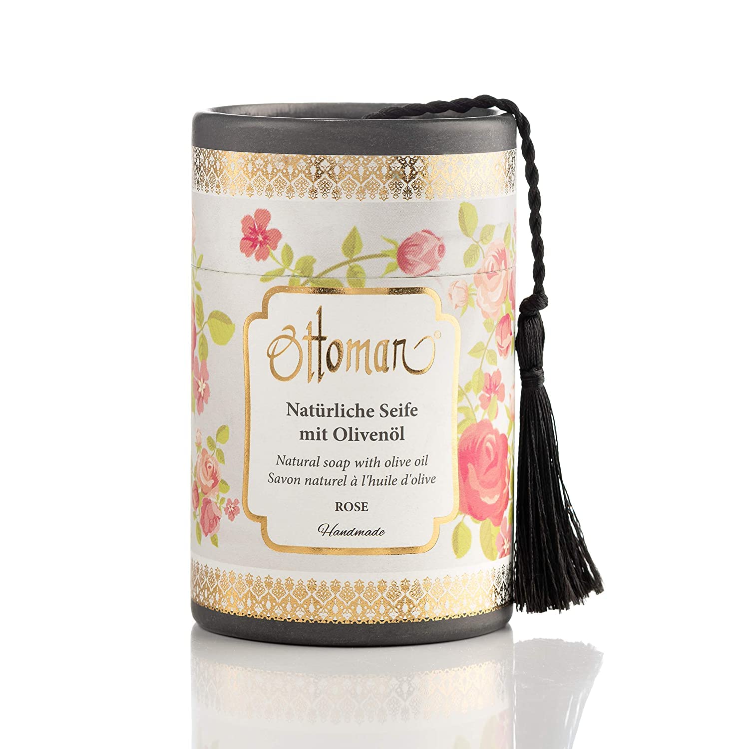 Ottoman Handmade Natural Olive Oil Soap in a Cylindrical Tin – Rose – 2 x 75g Bars. Natural olive oil soap in a nostalgic cylindrical tin, with a warm rose fragrance. The soap comes in a pretty gift box and is suitable for all skin types for regular cleansing and care. Thanks to olive oil, which naturally has particularly nourishing properties, the skin is nourished with nutrients and vitamin E, preventing dryness. Treat yourself to the complete combination of care and fragrance in a special rose design, or give the rose olive oil soap in the cylindrical tin to your loved ones. Features: Dye-free, free of cosmetic allergens, vegan, mineral oil-free, phthalate-free, paraben-free, paraffin-free, silicone-free. The soaps are free of chemical additives and cosmetic allergens.Features: Dye-free, cosmetic allergen-free, vegan, mineral oil-free, phthalate-free, paraben-free, paraffin-free, silicone-free. The soaps are free of chemical additives and cosmetic allergens. Treat yourself to this combination of care and fragrance, presented in a special rose design, or give the olive oil soap in the cylindrical tin to your loved ones. Thanks to olive oil, which naturally possesses particularly nourishing properties, the skin is further nourished with nutrients and vitamin E, preventing dryness. Natural olive oil soap in a nostalgic cylindrical tin, with a warm rose fragrance. The soap comes in a beautiful gift box and is suitable for all skin types for regular cleansing and care. Ottoman Handmade Natural Olive Oil Soap in a Cylindrical Tin - Rose - Pack of 2 - 75g.Ottoman Lot de 2 savons naturels faits à la main avec huile d'olive dans une boîte cylindrique – Rose – Lot de 2 pièces de 75 gDESCRIPTION DU PRODUIT Ottoman Savon naturel fait à la main avec de l'huile d'olive dans une boîte cylindrique – Rose – 2 pièces de 75 g. Savon naturel à l'huile d'olive dans une boîte cylindrique nostalgique, avec un parfum de rose chaud. Le savon est livré dans une jolie boîte cadeau et convient à tous les types de peau pour un nettoyage et un entretien réguliers. Grâce à l'huile d'olive, qui a naturellement des propriétés particulièrement nourrissantes, la peau est nourrie et nourrit en nutriments et en vitamine E et ne sèche donc pas. Offrez-vous la combinaison complète de soin et de parfum dans une rose spéciale ou offrez le savon à l'huile d'olive rose dans la boîte cylindrique à vos proches. Caractéristiques : sans colorant, sans allergènes cosmétiques, végétalien, sans huile minérale, sans phtalates, sans parabène, sans paraffine, sans silicone. Les savons sont exempts d'additifs chimiques et d'allergènes cosmétiques.Caractéristiques : sans colorant, sans allergènes cosmétiques, végétaliens, sans huile minérale, sans phtalates, sans parabène, sans paraffine, sans silicone. Les savons sont exempts d'additifs chimiques et d'allergènes cosmétiques. Offrez-vous la combinaison de soin et de parfum complétée dans une rose spéciale ou offrez le savon à l'huile d'olive dans la boîte cylindrique à vos proches. Grâce à l'huile d'olive, qui possède naturellement des propriétés particulièrement nourrissantes, la peau est en outre nourrie et nourrit en nutriments et en vitamine E et ne sèche pas ainsi. Savon naturel à l'huile d'olive dans une boîte cylindrique nostalgique, avec un parfum de rose chaud. Le savon est livré dans une belle boîte cadeau et convient à tous les types de peau pour un nettoyage et un entretien réguliers. Ottoman Savon naturel fait à la main avec de l'huile d'olive dans une boîte cylindrique - Rose - Lot de 2 - 75 gr.