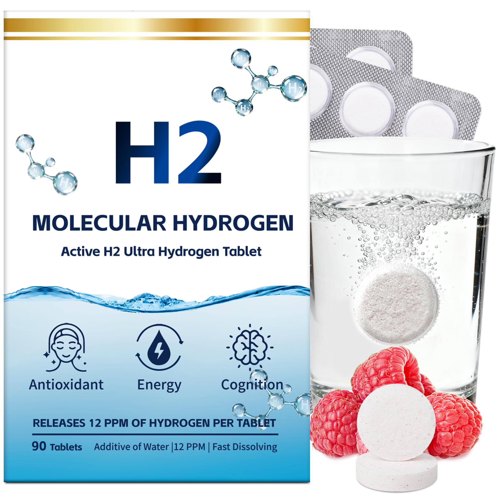 FAST DISSOLVING USA QUALITY ASSURANCE-Simple, safe, and effective. Just drop one tablet into an open glass of water (no special pressure bottle needed) and it dissolves completely in seconds. Proudly manufactured in the USA in a GMP-certified facility and strictly third-party tested. You get pure, potent hydrogen water with zero fillers—quality you can taste and trust. FORTIFIED WITH ESSENTIAL MAGNESIUM-Hydration meets nutrition. Each tablet creates hydrogen-rich water while delivering 100mg of highly bioavailable Magnesium. This essential mineral works synergistically to support muscle relaxation, nervous system health, and better sleep quality, making this a comprehensive daily supplement for your body and mind. FASTER RECOVERY REDUCED FATIGUE-Don't let muscle soreness slow you down. By combating oxidative stress and regulating inflammation, our hydrogen tablets help accelerate recovery after intense workouts or long days. It promotes efficient lactic acid clearance, helping you bounce back faster and maintain peak physical performance—perfect for athletes and active lifestyles. CLEAN CELLULAR ENERGY BRAIN BOOST-Say goodbye to brain fog and the afternoon slump without the jitters of caffeine. Hydrogen molecules penetrate the blood-brain barrier to act directly on your mitochondria (the powerhouse of cells), enhancing natural ATP energy production. Whether you are coding, creating, or crunching numbers, experience sharper focus, improved mental clarity, and sustained vitality throughout your day. INDUSTRY-LEADING 12 PPM CONCENTRATION-Unlock the true potential of hydrogen water with our ultra-potent formula. Unlike standard tablets that offer low saturation, our advanced technology generates a massive 12 PPM (Parts Per Million) of molecular hydrogen per serving. This ensures maximum cellular absorption to effectively neutralize harmful free radicals, providing you with the deepest antioxidant support available.