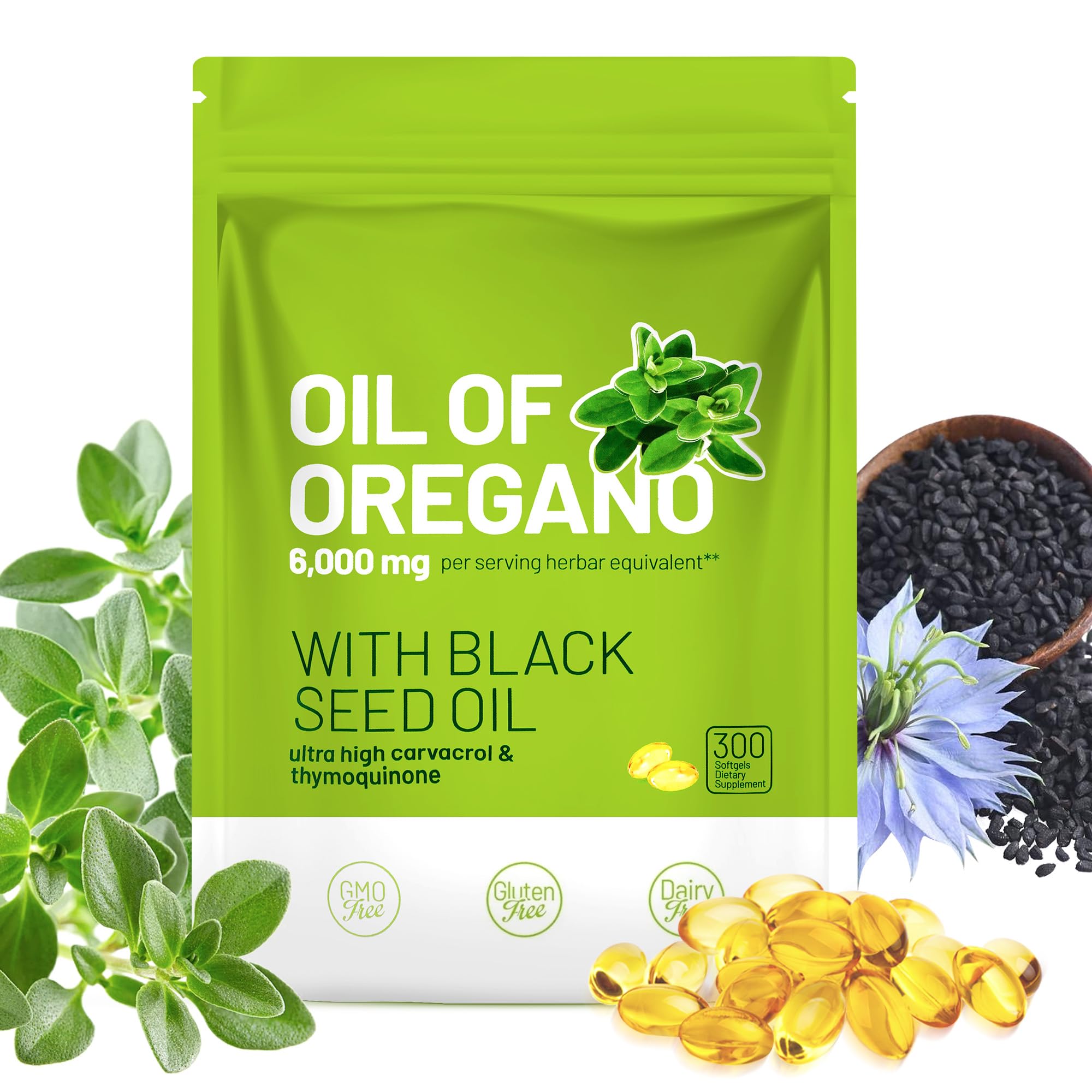 Premium Quality, GMP certified facility: Trust in purity. Our Oil of Oregano with Black Seed Oil softgels are manufactured in a GMP-certified facility. They are Non-GMO, Gluten-Free, and free from soy, dairy, and artificial preservatives. Designed for easy absorption without the harsh aftertaste of liquid drops. Rich in Natural Carvacrol Thymoquinone: We prioritize potency. Our cold-pressed extraction method preserves the vital active compounds found in nature. This formula is packed with powerful antioxidants that help fight free radicals, support cellular health, and maintain a robust immune defense system year-round. Respiratory Health Digestive Comfort: Don't let seasonal challenges slow you down. Our potent herbal duo is traditionally used to help maintain clear airways and support healthy respiratory function. Additionally, the natural properties of oregano and black cumin seed help soothe occasional digestive bloating and promote a balanced gut environment. 300 Softgels, 5-Month Mega Supply: Stop reordering every month. Crobirware offers an incredible value with 300 easy-to-swallow softgels per pack. This bulk supply ensures you and your family have consistent, long-term immune and antioxidant protection, making it the smart choice for daily wellness. Max Strength 6,000mg 2-in-1 Formula: Experience the synergistic power of our premium blend featuring Oil of Oregano and Black Seed Oil. Each serving provides a potent 6,000mg herbal equivalent dose, expertly formulated to deliver higher concentrations of active Carvacrol and Thymoquinone for superior immune and wellness support compared to single-ingredient supplements.
