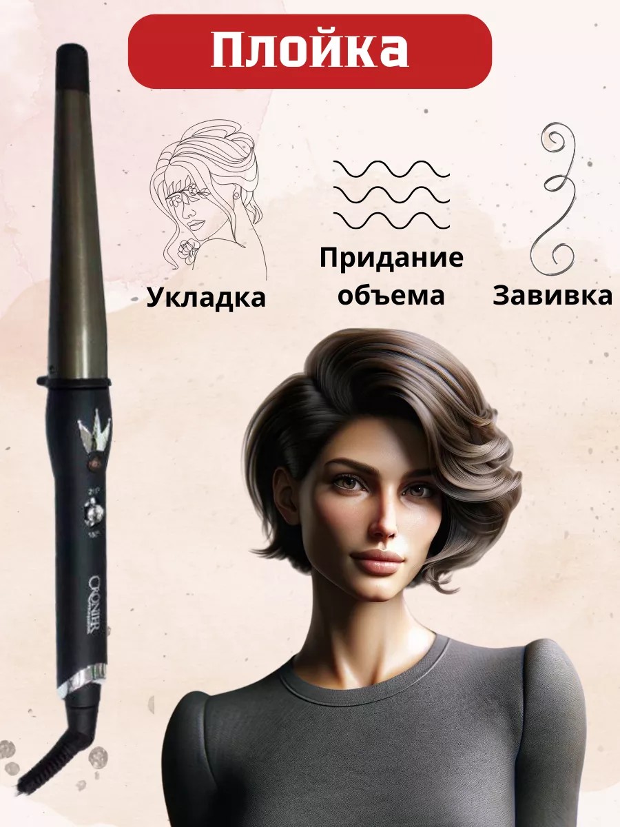 Cronier Professional Профессиональная конусная плойка для волос / Плойка для волос / Плойка для укладки. - Коническая форма плойки с диаметром от 25мм до 32 мм - Нагревательный элемент из керамики - Рабочая поверхность плойки с титаново-турмалиновым покрытием - Ультрабыстрый нагрев - Ручка с прорезиненным покрытием - Профессиональная вращающийся шнур длиной 2.5м.Свернуть.