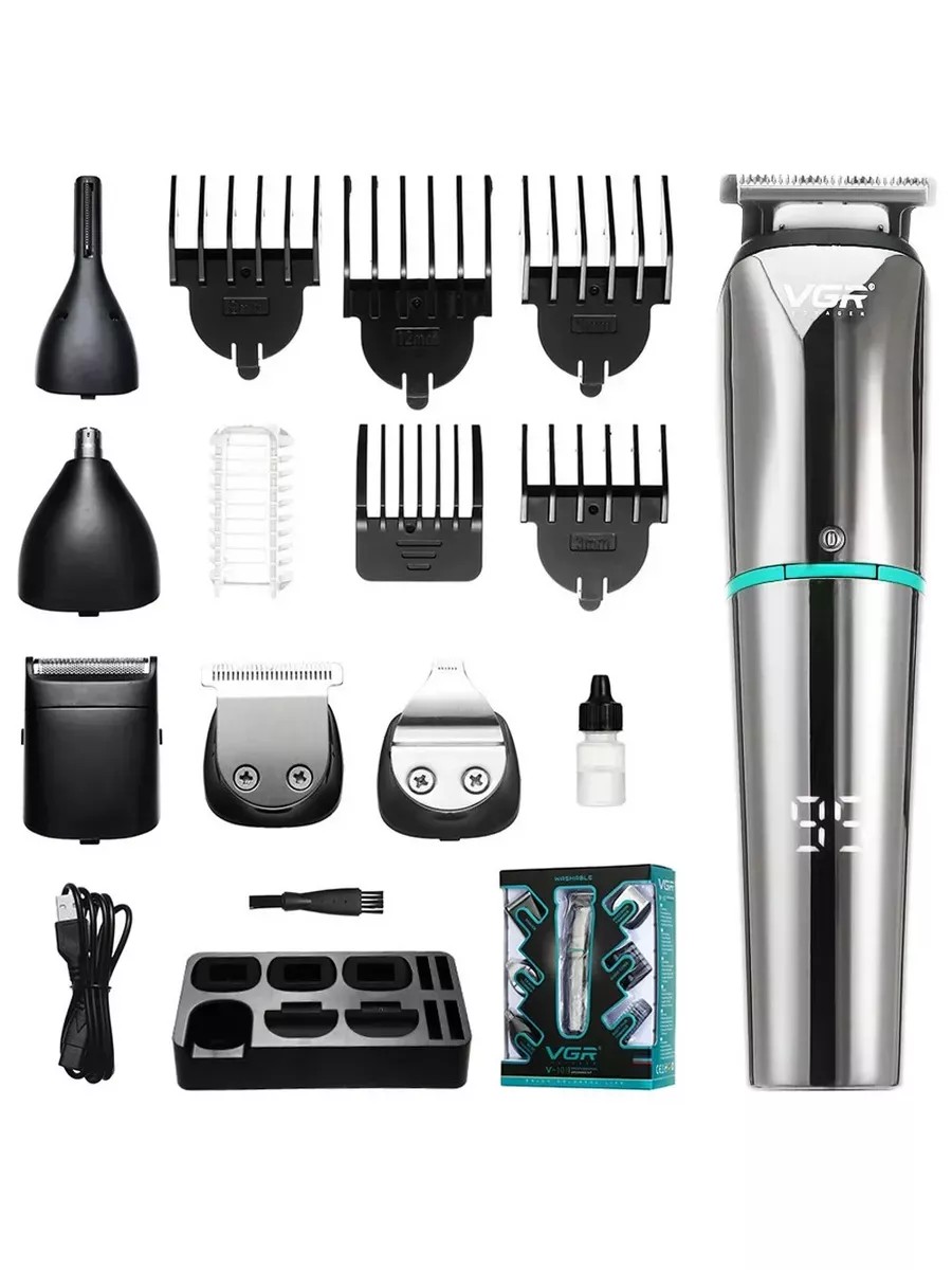 Набор для стрижки волос 6 в 1 представляет собой универсальную машинку для стрижки с разными насадками. Насадка для стрижки волос, 4 насадки регулировки длины 3-12 мм, триммер для носа, дизайнерский триммер, узкий триммер, сеточная бритва, насадка 3-4,5 мм. Лезвия из нержавеющей стали, встроенный аккумулятор и LED дисплей который показывает уровень заряда.