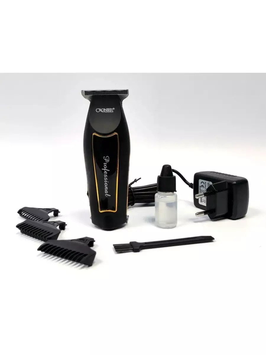 Stylish, powerful, and affordable hair clippers from Cronier Professional 9220/9220A. This model is ideal for moustaches, beards, and trimming and decorative elements on the head. The Cronier Professional beard trimmer will help you create and maintain your personal style. The clipper is equipped with a T-shaped blade. Thanks to the T-shaped blade, the trimmer is ideal for precise trimming around the neck and collar area, shaping beards and moustaches, and detailed trimming around the ears. The blade unit is made of high-quality alloy steel and precision-ground. The Cronier trimmer is equipped with a powerful and durable rotary motor. The original toggle switch and metal loop for hanging make the model unique. Features of the Cronier Professional: - Powerful rotary motor - Long-lasting operation - Small weight and dimensions - Fits easily even in a small palm - Durable and highly productive - Minimum cutting height of 0.1 mm - Operates on 100-240 V - 900 mA battery