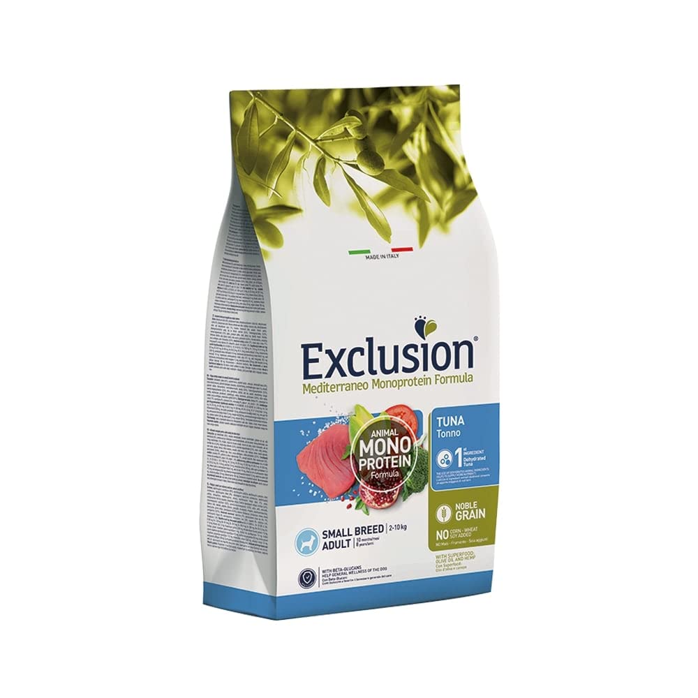 Preserved with natural antioxidants. Exclusion mediterrano monoprotein noble grain adult small tuna kibble is a complete and balanced food formulated with a single dehydrated animal protein source and only high-quality cereals.Préservé avec des antioxydants naturels. Les croquettes Exclusion mediterrano monoprotein noble grain adult small thon sont un aliment complet et équilibré formulé avec une seule source protéinée animale déshydratée et seulement une céréale de haute qualité.