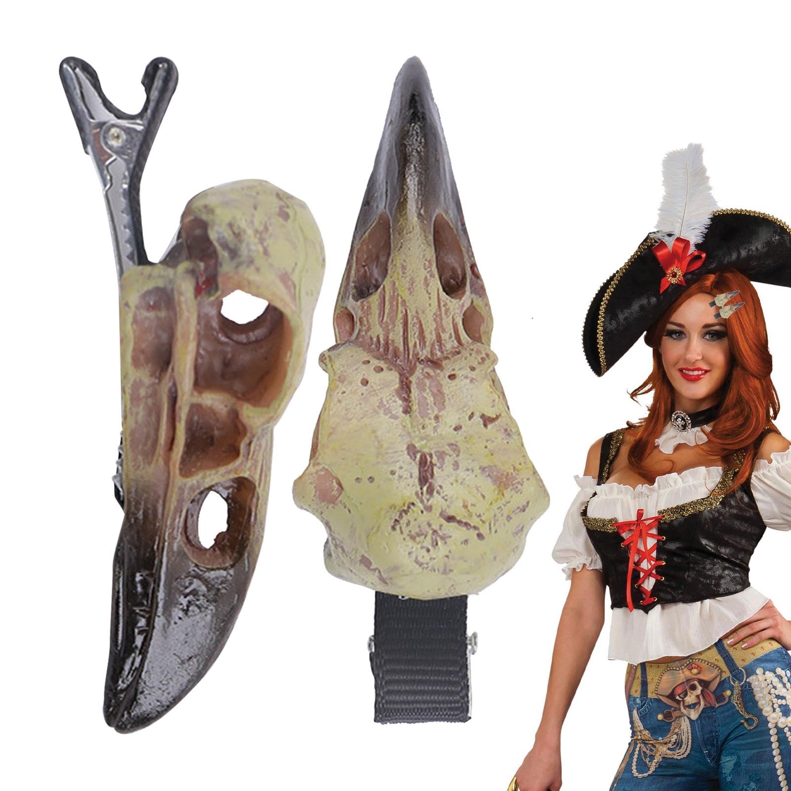Crow Head Skull Hair Clips - Resin Barrette Spooky Hair Piece For Hairstyles | Accessory Hairpins For Costume Parties Holiday Day Of The Dead Halloween