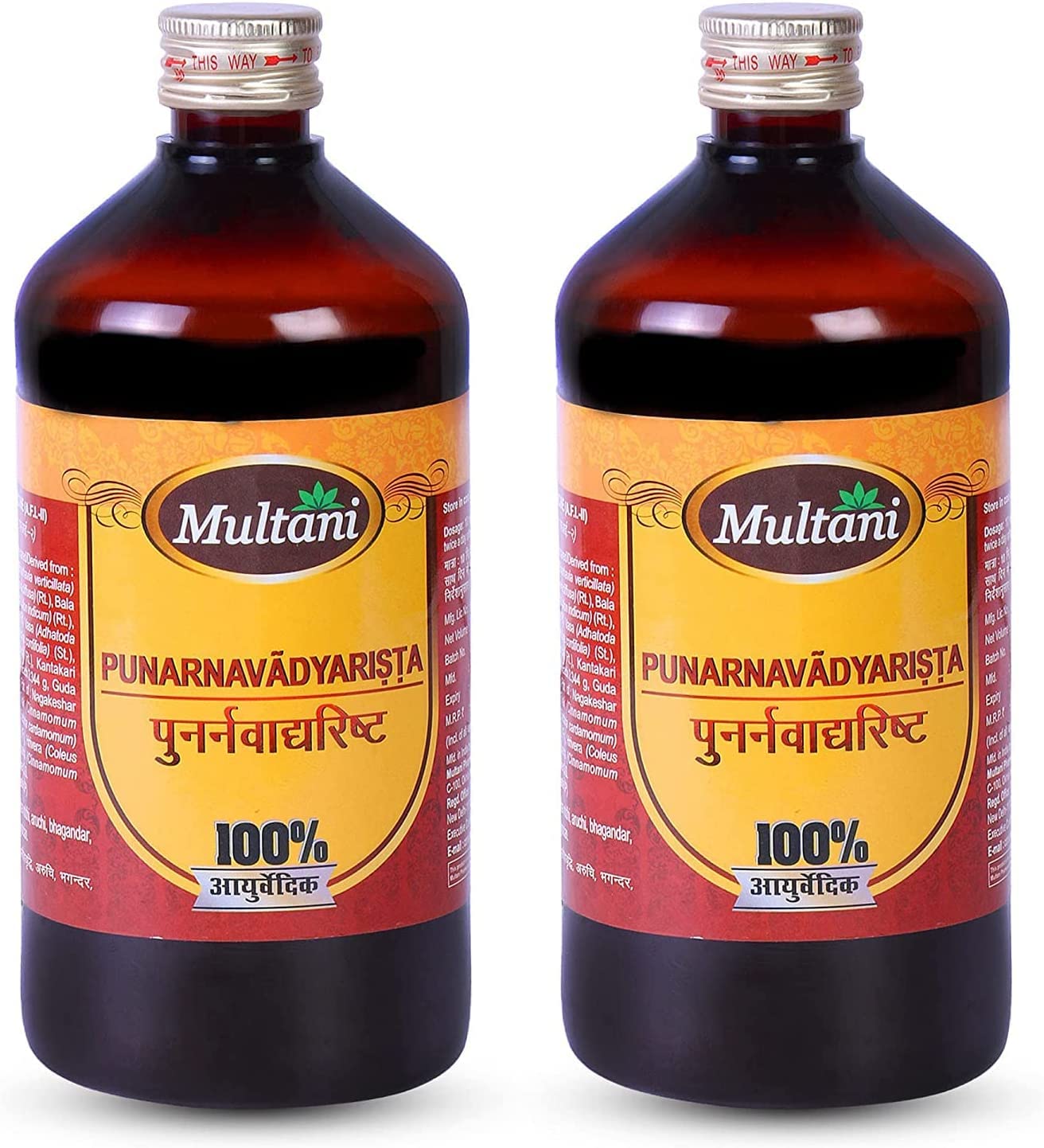 Punarnavadyarishta is an Ayurvedic medicine in liquid form. It is mainly used in the treatment of heart diseases, dizziness, constipation etc. It contains self-generated alcohol, which acts as the media for herbal active principles.Dosage and doctor consultation : In case of any question or consultation, you can contact our general practitioners free of charge. Dosage - 10-20 ml with water, twice a day after meals or as directed by the doctor. For Latest Batch and Offers : Buy Multani products only from Multani Pharmaceuticals Ltd. for the latest batch and current offers. What Makes Multani Punarnavadyarista So Effective : Ingredients used in Multani Punarnavadyarista like Shweta and Rakta Punarnava are beneficial in the smooth functioning of vital organs. Usefulness : Multani Punarnavadyarista helps in correcting splenomegaly, sluggish liver and ascites conditions associated with it. Multani Punarnavadyarista helps you release excess toxins and sodium through urine. Multani Punarnavadyarista : Multani Punarnavadyarista is based on the ancient Ayurveda pharmacy Charak Samhita in India. Multani Punarnavadyarista Is Time Tested Ayurvedic Remedy Which Is Helpful In The Condition Related To Kidney Liver. It relieves swelling.CROW Multani Punarnavadyarista Nuttig bij zwelling, leveraandoeningen, ontstekingen en diureticum Ayurvedische remedie voor lever, nier-, urine- en buikaandoeningen - elk 450 ml 2 Pack Punarnavadyarishta Is Een Ayurvedisch Geneesmiddel In Vloeibare Vorm. Het wordt hoofdzakelijk gebruikt bij de behandeling van hartziekten, duizeligheid, constipatie enz. Het bevat zelf gegenereerde alcohol, die fungeert als de media voor kruiden actieve principes.Dosering en doktersconsultatie : in geval van een vraag of consult kunt u gratis contact opnemen met onze huisartsen. Dosering - 10-20 Ml Met Water, Tweemaal per Dag Na De Maaltijden Of Zoals Voorgeschreven door De Arts. Voor de nieuwste batch en aanbiedingen : Koop Multani-producten alleen bij Multani Pharmaceuticals Ltd. voor de nieuwste batch en huidige aanbiedingen. Wat Multani Punarnavadyarista zo effectief maakt : ingrediënten die worden gebruikt in Multani Punarnavadyarista zoals Shweta en Rakta Punarnava zijn gunstig bij het soepel functioneren van vitale organen. Nuttigheid : Multani Punarnavadyarista helpt bij het corrigeren van splenomegalie, trage lever en aandoeningen van ascites die ermee geassocieerd zijn. Multani Punarnavadyarista helpt u om overtollige gifstoffen en natrium via urine vrij te maken. Multani Punarnavadyarista : Multani Punarnavadyarista is gebaseerd op de oude Ayurveda-apotheek Charak Samhita in India. Multani Punarnavadyarista Is Tijd Getest Ayurvedische Remedie Die Nuttig Is In De Aandoening Met betrekking tot Nier Lever. Het verlicht zwelling.