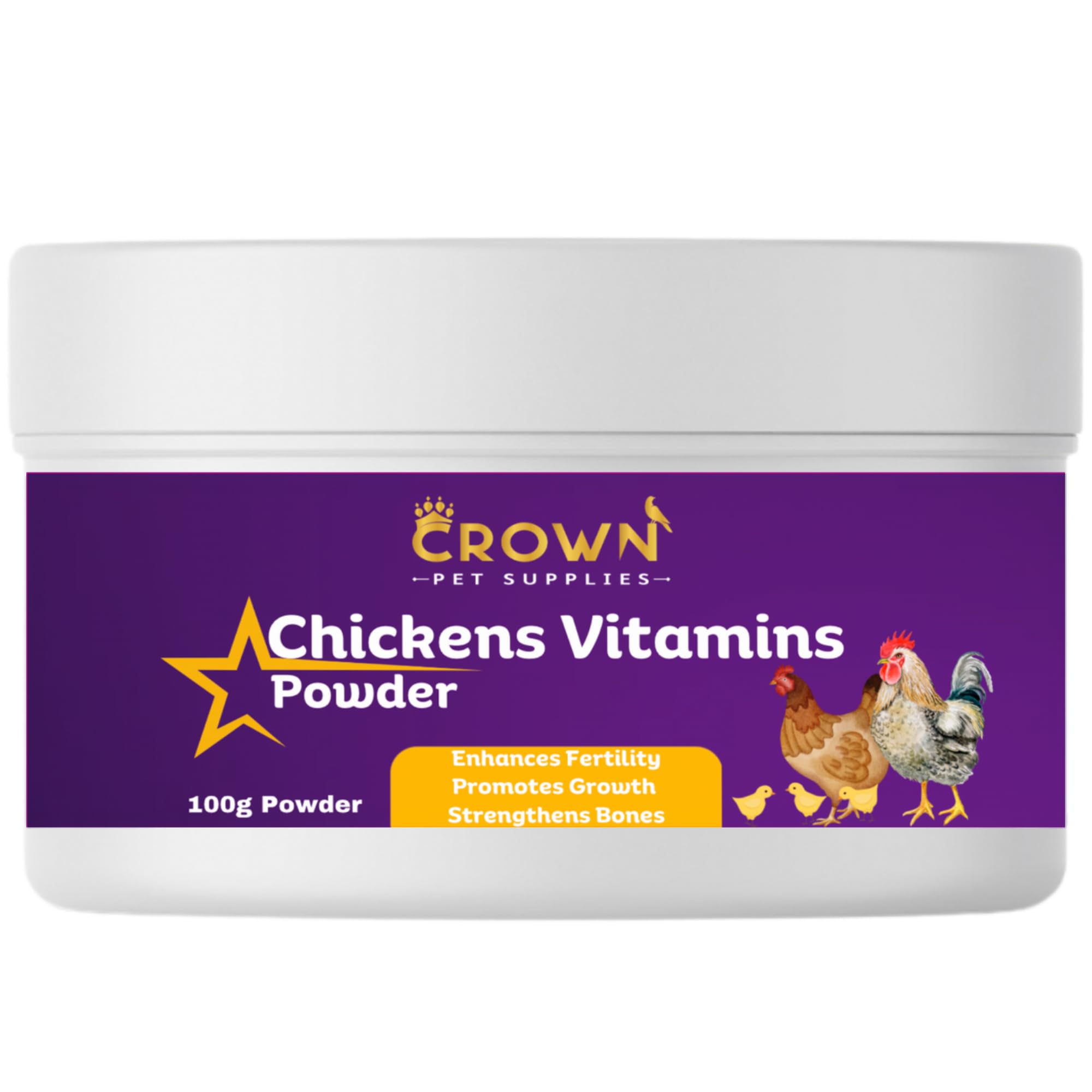 Crown Pet Supplies Poultry Multivitamin Powder with Vitamin B & C Helps Maintain Energy Supports Healthy Growth Appetite Feather Quality Bone Strength & Overall Well-Being 100 Grams