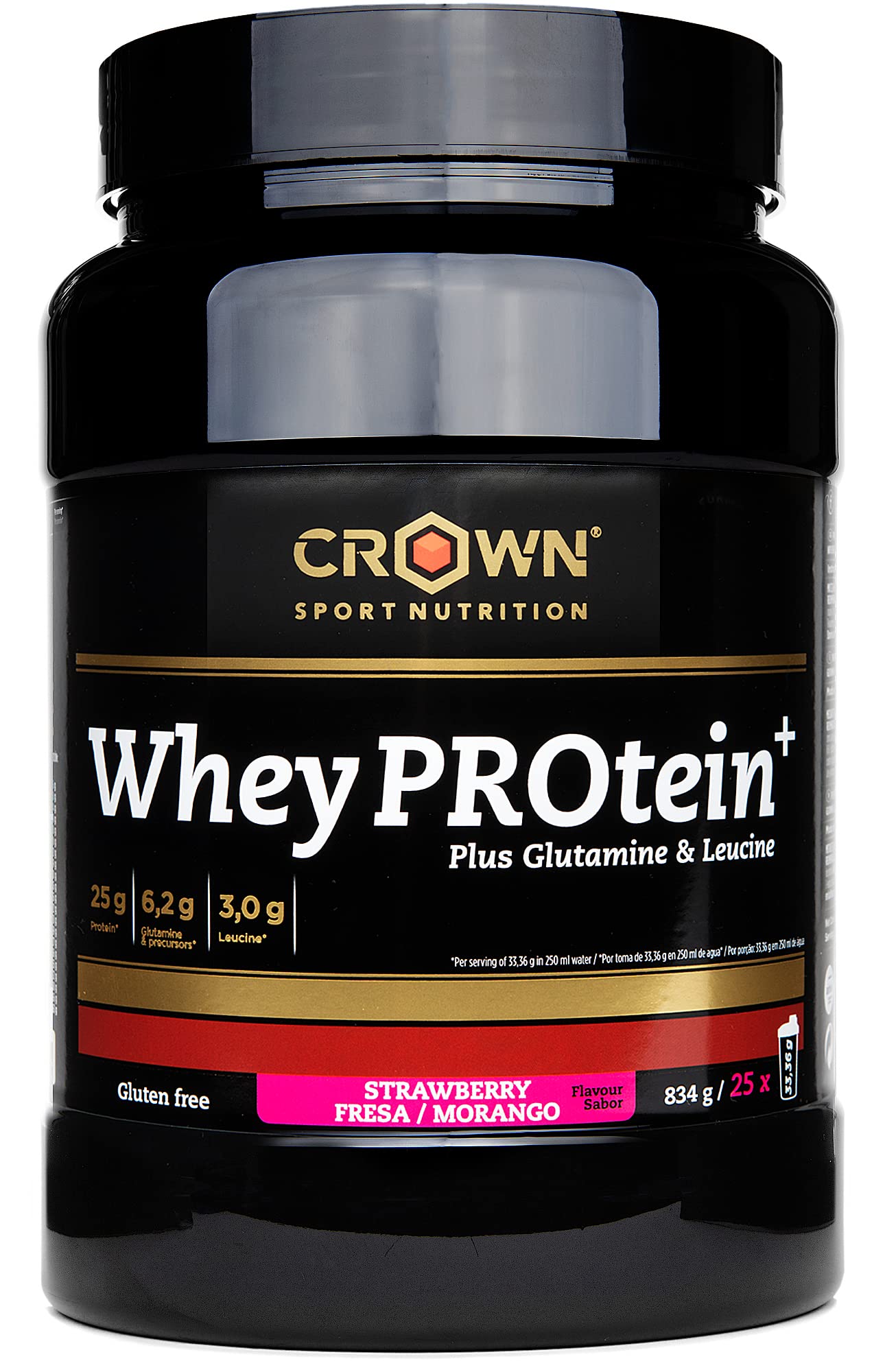 INGREDIENTS (89 ) Whey Protein Concentrate (WPC), (5.9 ) L-Glutamine, Flavoring, Fat-Reduced Cocoa Powder (1.62 ) L-Leucine, Sweetener: Sucralose. Contains milk (including lactose). May contain traces of soy.We've added extra ingredients: we've enhanced your formula by adding the branched-chain amino acid Leucine and L-Glutamine, thus improving muscle recovery. Directions: Mix 34.8g (approximately 2 level scoops) in 250ml of water and ideally take after training to curb protein catabolism and promote muscle anabolism. High quality and made in Spain: If you need sports supplements because you're training at home, functional training, suspension training, etc., Whey PROtein won't disappoint. For demanding athletes: Many athletes use protein to increase muscle mass or to provide an extra amount of protein due to their diet and or demanding daily training needs. PURE CONCENTRATED SERUM PROTEIN: Obtained through ultra-microfiltration via membranes, with high solubility and a great taste, plus it's quickly digested.Crown Sport Nutrition Whey PROtein Concentré protéine lactosérum aux acides aminés Leucine et Glutamine avec certificat antidoping Informed Sport (Pot de 834 g, saveur fraise) Fraise Bote de 834gDESCRIPTION DU PRODUIT INGRÉDIENTS (89 ) Concentré de protéine de lactosérum (WPC), (5,9 ) L-glutamine, arôme, poudre de cacao dégraissé (1,62 ) L-leucine, édulcorant: sucralose. Contient du lait (y compris le lactose). Peut contenir des traces de sojaNous ajoutons des ingrédients supplémentaires : nous avons amélioré votre formule en ajoutant l'acide aminé ramifié Leucine et L-Glutamine, améliorant ainsi la récupération musculaire. Mode d'emploi : mélanger 34,8 g (environ 2 casseroles rasos) dans 250 ml d'eau et prendre de préférence après l'entraînement pour freiner le catabolisme des protéines et favoriser l'anabolisme musculaire. Haute qualité et fabrication espagnole : si vous avez besoin de suppléments sportifs car vous suivez un entraînement à la maison, fonctionnel, suspension, etc. Whey PROtein ne vous décevra pas. Pour les sportifs exigeants : de nombreux athlètes utilisent la protéine pour augmenter la masse musculaire ou pour apporter une quantité supplémentaire de protéines en raison de leur alimentation et ou de leurs besoins quotidiens sportifs exigeants. PROTÉINE DE SÉRUM PURE CONCENTRÉ : Obtenu par ultra-micro filtration à travers les membranes, avec une grande solubilité et un goût élevé, en plus il est rapidement digéré.