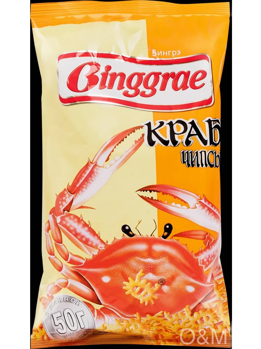 Чипсы хрустящие БИНГРЭ Краб – традиционный хрустящий снек в форме маленьких крабиков.