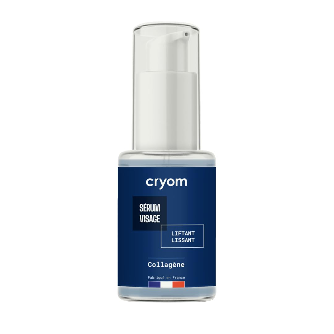Collagen makes up 80 of the proteins in the dermis. It plays a vital role in facial firmness and structure. From the age of 30, men begin to lose this protein at a rate of 1 per year. This loss is even faster for smokers and sunbathers. A true collagen-boosting concentrate, the Cryom face serum formula contributes to three key actions: - Reduces the appearance of deep wrinkles with a lifting effect, - Smoothes skin texture and its micro-relief, - Prepares the skin to receive and enhance the effects of your usual moisturizer. On clean, dry skin, and before applying your usual moisturizer, apply a few drops of Cryom collagen-boosting face serum to the entire face and neck twice a day (morning and evening), massaging it in, especially, over hollow areas, wrinkles, and crow's feet. Results will be visible in just a few weeks. 97 naturally derived ingredients. Made in France. SAFETY WARNING For external use only.CRYOM - Sérum visage BOOSTER de collagène, flacon pipette 30 ml, cosmétique pour hommesDESCRIPTION DU PRODUIT DESCRIPTION DU PRODUIT Le collagène représente 80 des protéines du derme. Il joue un rôle essentiel dans la fermeté et la structure du visage. Dès 30 ans, les hommes commencent à perdre cette protéine au rythme de 1 par an. C'est encore plus rapide pour les fumeurs ou les accros au soleil. Véritable concentré booster de collagène, la formulation du sérum visage cryom contribue à 3 actions : - Réduit le volume des rides profondes par un effet liftant, - Lisse le grain de peau et son micro-relief, - Prépare la peau à recevoir et à renforcer les effets de votre crème hydratante habituelle. Sur une peau propre et sèche et avant de mettre votre crème hydratante habituelle, le sérum visage booster de collagène cryom doit être appliqué par petites gouttes sur tout le visage et le cou, 2 fois par jour (matin et soir), en massant surtout les zones creuses, les rides, et les pattes d'oie. En quelques semaines seulement, les résultats seront visibles. 97 d'ingrédients d'origine naturelle. Fabriqué en France. AVERTISSEMENT DE SÉCURITÉ Usage externe uniquement.