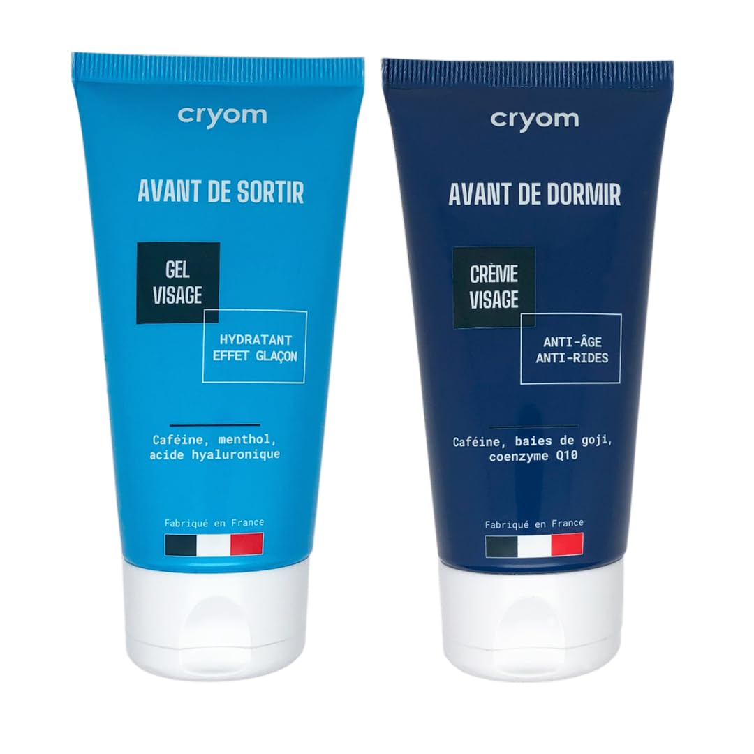 CRYOM - Facial routine moisturizing gel with cryo sensation effect BEFORE GOING OUT and anti-wrinkle and anti-aging cream BEFORE SLEEPING 2 tubes 75 ml cosmetics for men