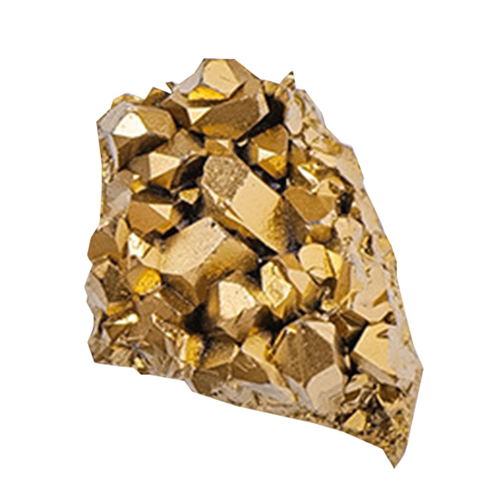 Unearth the power of nature with our stunning raw crystal cluster. Gaze upon its gorgeous crystals and let them enhance your clairvoyance and connection to the supernatural. Keep your mind open and let this natural crystal light up your holiday season. Explore the wonders of the world with this precious gem. Specification: Name: Electroplated Golden Crystal Cluster : Crystal Product size: about 2-3cm 0.79-1.18 inches Weight: about 10g Packing List: 1 Crystal Cluster Note: Due to different lighting and screen settings, the item color may be slightly different from the picture. Due to different manual measurements, please allow a 1-2cm difference in size.?Thoughtful Present: Our crystal cluster serves as a mesmerizing addition to your interior decor, making it a thoughtful and unique gift for your loved for any occasion, especially ideal for adding a touch of elegance and energy to any space. ?Boost Your Magnetism: With this crystal cluster, tap into the energy of love and connection to enhance your absolute charm. Say goodbye to irritability and tension and say hello to a new, more alluring you. ?Elegant Accent Piece: Elevate your space with a crystal cluster, where each natural gemstone serves as a stunning focal point, progressively enhancing the beauty of any home as a dazzling decoration. ?Mystical Connection: Harness the serene energy of our crystal cluster to deepen your meditation, enhance clairvoyance, and foster a supernatural connection, serving as an excellent medium to calm your spirit. ?Distinctive Raw Beauty: Raw crystal clusters offer varying natural beauty, with unique shapes and variations enhancing its wonderful mineral quality as a specimen.