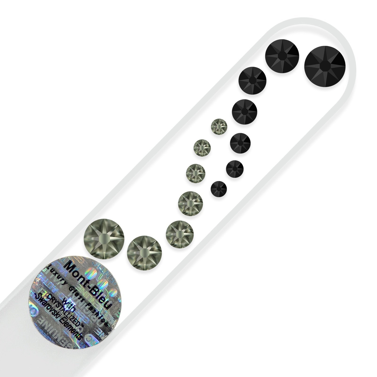 Crystal Glass Nail File hand decorated with Swarovski crystals Hand Made in Czech Republic (Europe) Czech Tempered Glass Lifetime Guaranty in Suede Sleeve (Jet - Black Diamond)