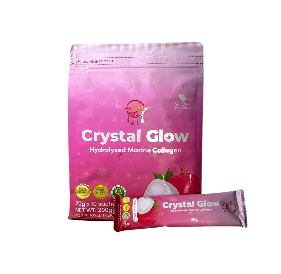 Crystal Glow Hydrolyzed Marine Collagen Mix with Glutathione & Lychee Extract 10 Sachets 10 Count (Pack of 1)