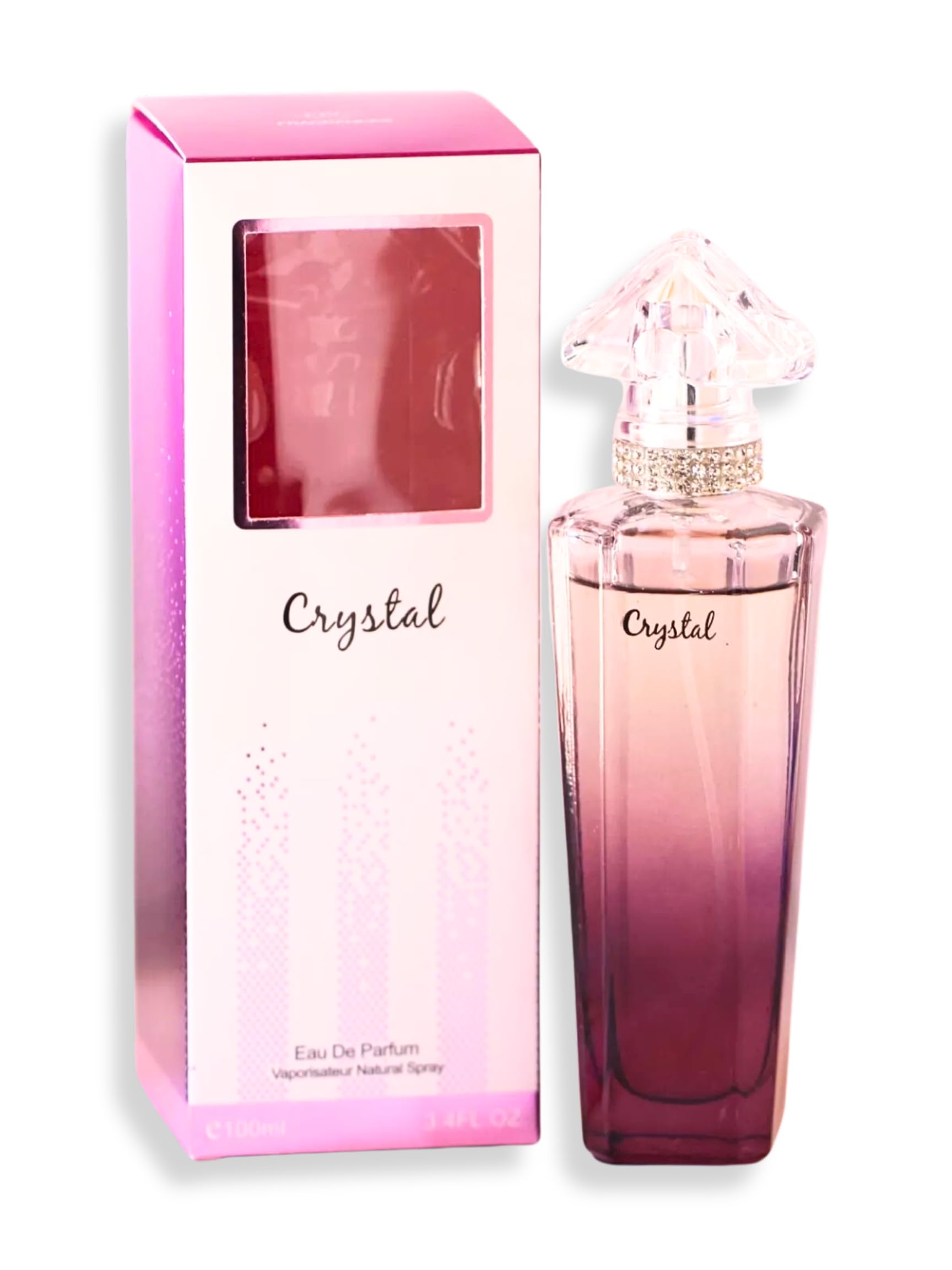CRYSTAL POUR FEMME EAU DE PARFUM 3.4 FL. OZ. is a Floral Woody Musk fragrance for women. Top notes are Raspberry and Rose; middle notes are Cassis, Pink Pepper, Peony and Jasmine; base notes are Vanille, Musk and Virginia Cedar. CRYSTAL POUR FEMME EAU DE PARFUM 3.4 FL. OZ. designer cologne is an alternative fragrance and is in no way affiliated with the mentioned brand name. All product and company names are trademarks or registered trademarks of their respective holders. Use of them does not imply any affiliation with or endorsement by them. Fragrances are less expensive versions of the genuine/original brand owned by their rightful owners. Impression (version/inspired) fragrances are in no way connected with the trademark or trademark owners mentioned on the packagin. Whether you opt for the enduring elegance of perfume or the refreshing vivacity of cologne, these fragrant masterpieces are designed to accentuate your personality and make an unforgettable impression. Share your pleasure with someone else and treat that special person. It is the perfect gift for Mother's and Fathers Day, Valentine's Day, Christmas, a Birthday, Anniversary, Graduation, Business Gifts, any Holiday, or just as a gift to yourself. Apply pulse points on your wrists, chest, and neck to warm the scent and give its notes the space to shine. Spray onto the neck, wrists, and clothing, without rubbing. Indications Safe for External. A fresh Scent that can last for best results, Apply twice Daily Concentrated. For a longer-lasting scent, consider layering with scented body lotions or creams. Store the perfume in a cool, dry place away from direct sunlight and extreme temperatures. Reapply as desired throughout the day to maintain the fragrance's freshness.