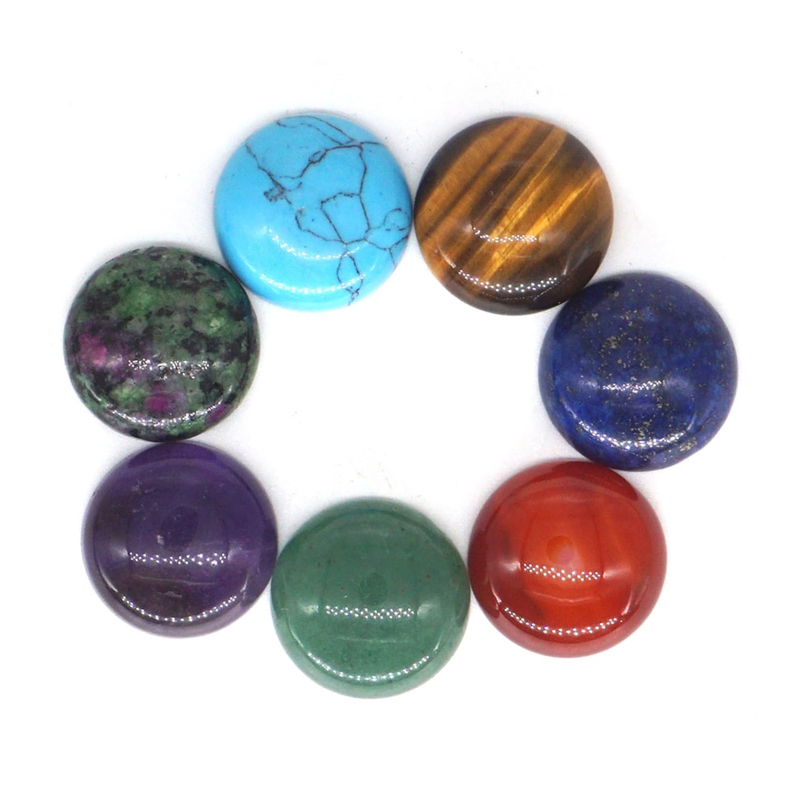 Crystal Set 7 Gemstone Engraved Reiki Quartz Crystal Round Cabochon Flat Worry Spiritual Stones 1 Set Gemstones and Crystal