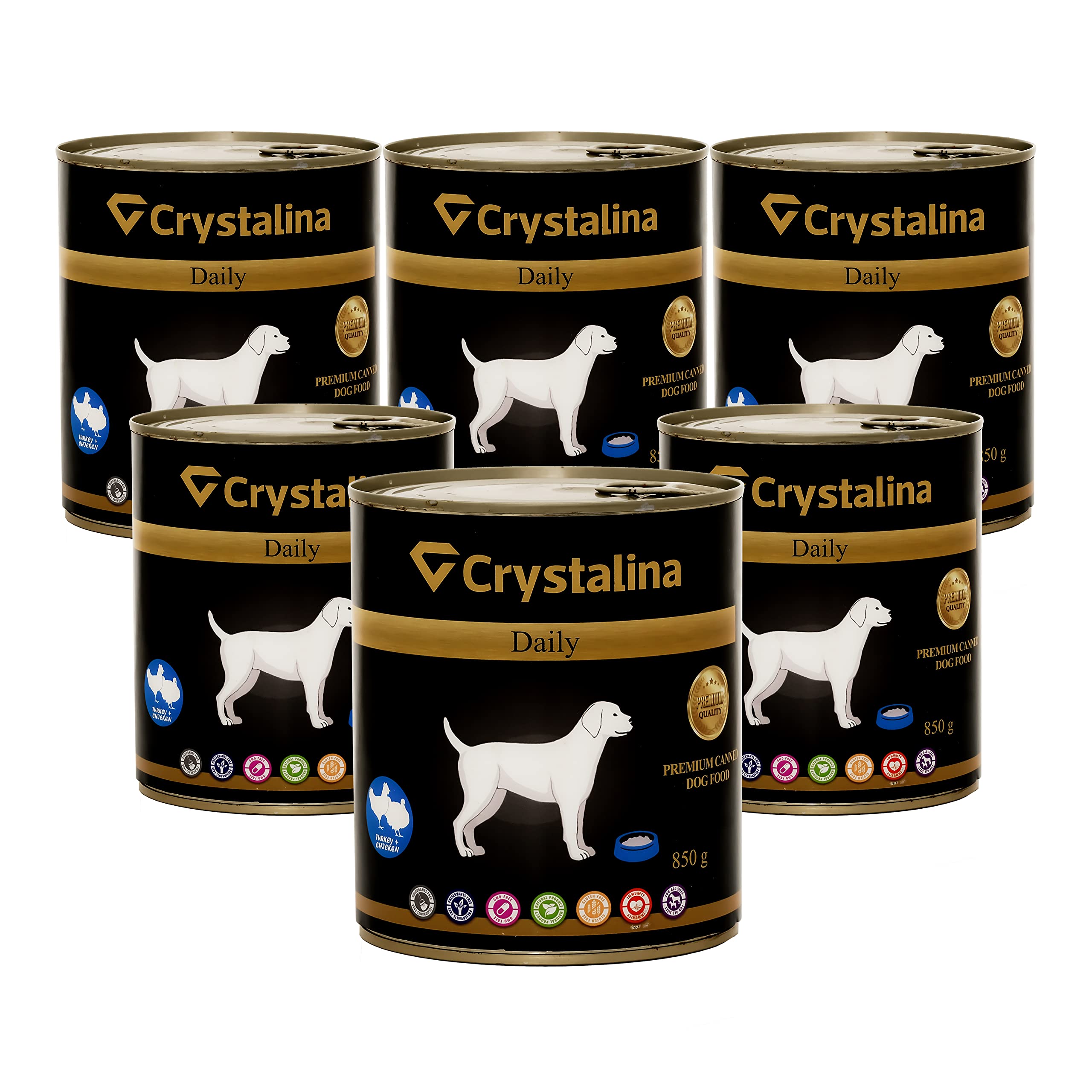 Crystalina Daily Premium Adult Dog Food with Turkey and Chicken | Canned Dog Food | High Meat Content up to 87% | Wheat Free | 6 Pack (6 x 850 g)