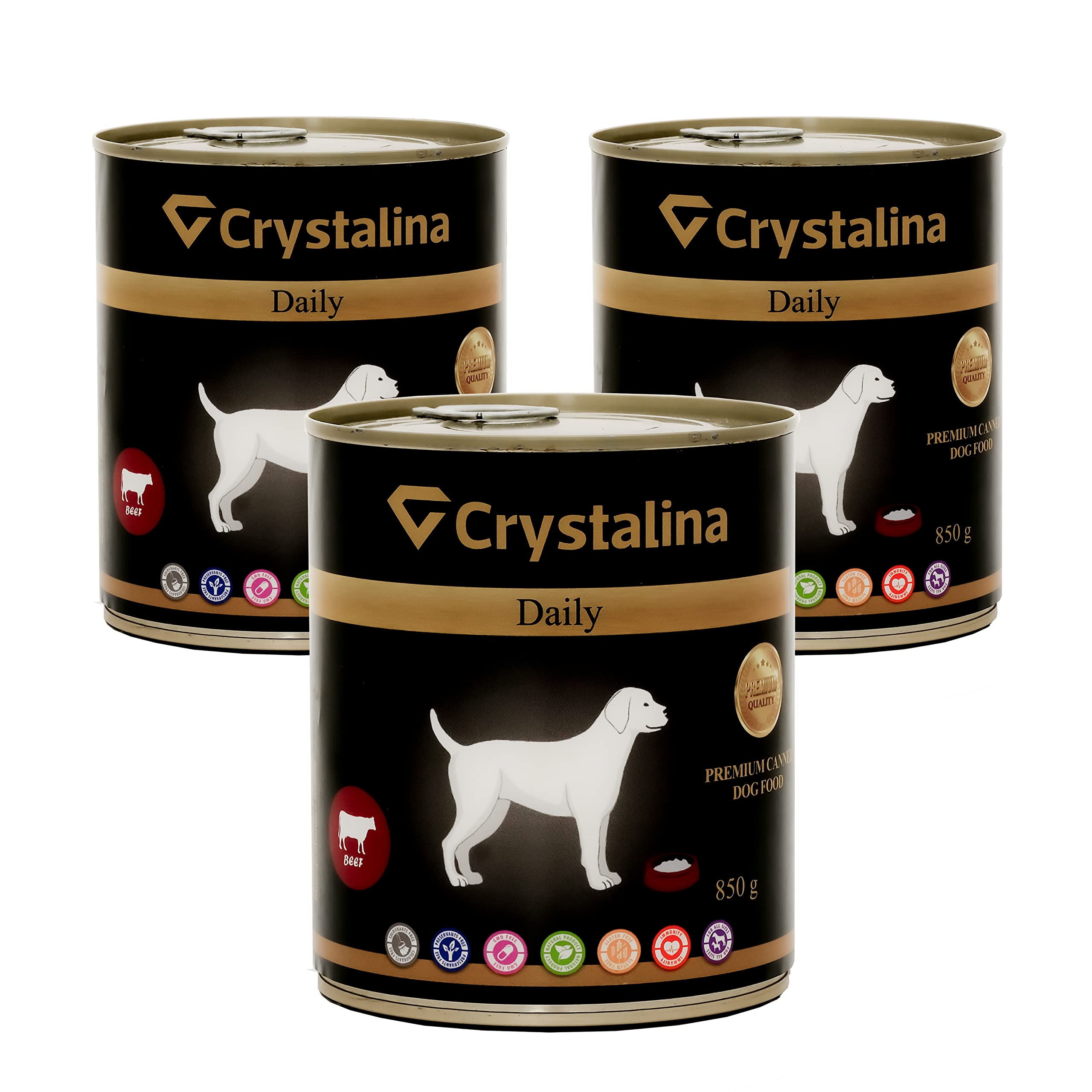 Packaging: 850g Composition: Fresh beef and beef offal (97 ), crystalina (clinoptilolite of sedimentary origin – Ig568), carrots, vitamins and minerals. Recommended dosage: Dog weight: 5kg 10kg 20kg 30kg over 30kg Dosage: 200g 400g 800g 1200g 1200g - 1700g Crystalina Daily premium canned food, carefully tailored to maintain the health and happiness of your dog. Like all Crystalina foods, this is a tasty and complete meal, designed to support the health and digestion of hungry mouths - a product that is kind to your pet's gut. Analytical components: ash: 3.5 , fiber: 0.5 , protein: 14.6 , oil and fat: 8.0 , moisture: 52 , Ca: 0.4 , P: 0.2 Attention: our quality food does not contain wheat.Crystalina Daily is carefully designed to provide your dog with all the necessary nutrients. So give your pet the necessary nutrition along with a tasty treat! All our foods help eliminate harmful substances from the body. Regular use of these supplements contributes to overall harmony, improved mood, and a stronger body. What's in the unique Crystalina food? Fresh meat. And, you ask, what's in the rest of the can? Only nutrients beneficial to your pet: Crystalina, vitamins, minerals, carrots, rice—everything your dog needs to be in good condition and receive optimal nutrition. Discover a perfectly balanced diet for your dog with proteins, vitamins, and minerals. Crystalina Daily (beef) is a delicious dog treat made from carefully selected meat. This juicy premium can contains a high proportion of quality meat, up to 97 . Do you have a dog at home? Do you want to have a healthy pet? Forget about table scraps. We all love our pets and want to give them the best—nature's best. Our research in this area has led to a solution. And the solution is called Crystalina, a natural food supplement. Conditionnement : 850 g Composition : bœuf frais et abats de bœuf (97 ), crystalina (clinoptilolite d'origine sédimentaire – Ig568), carottes, vitamines et minéraux. Dosage recommandé : Poids du chien : 5 kg 10 kg 20 kg 30 kg plus de 30 kg Dose : 200 g 400 g 800 g 1200 g 1200 g - 1700 g Aliment en conserve premium Crystalina Daily, soigneusement adapté, pour entretenir la santé et le bonheur de votre chien. Comme tous les aliments Crystalina, il s'agit d'un repas savoureux et complet, conçu pour favoriser la santé et la digestion des gueules affamées - produit respectueux des intestins de votre animal de compagnie. Composants analytiques : cendres : 3,5 , fibres : 0,5 , protéines : 14,6 , huile et graisse : 8,0 , humidité : 52 , Ca : 0,4 , P : 0,2 Attention : notre nourriture de qualité ne contient pas de blé .Crystalina Daily est soigneusement conçu pour apporter à votre chien tous les nutriments nécessaires. Donnez donc à votre animal l'alimentation nécessaire ainsi qu'une friandise savoureuse !. Tous nos aliments aident à éliminer les substances dangereuses de l'organisme, L'utilisation régulière de ces compléments contribue à l'harmonie générale, à l'amélioration de l'humeur et au renforcement du corps. Que contient l'aliment unique Crystalina ? De la viande fraîche. Et, demandez-vous, le reste de la conserve ? Uniquement des nutriments bénéfiques pour votre animal : Crystalina, vitamines, minéraux, carottes, riz, tout ce dont le chien a besoin pour être en bonne condition et pour recevoir une nutrition optimale. Découvrez une alimentation parfaitement équilibrée pour votre chien avec des protéines, des vitamines et des minéraux. Crystalina Daily (bœuf) est une délicieuse friandise pour chien qui est fabriqués à partir d'une viande sélectionnée avec précision. Cette boîte de conserve premium juteuse se compose d'une proportion élevée de viande de qualité, jusqu'à 97 . Vous avez un chien à la maison ? Vous voulez avoir un animal de compagnie en bonne santé ? Oubliez les restes « de table. » Nous aimons tous nos animaux de compagnie et nous voulons leur donner le meilleur, le meilleur de la nature. Nos recherches dans ce domaine ont permis de trouver une solution. Et la solution est appelée Crystalina, un complément alimentaire naturel.