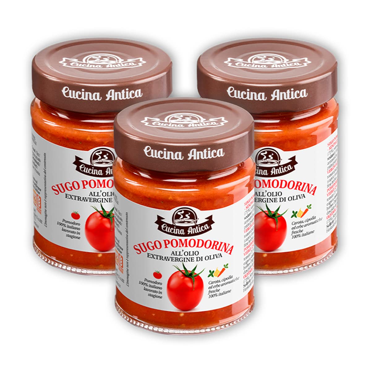 From Menù's over 90 years of experience in producing food specialties for professional catering, Cucina Antica was born, a line dedicated to lovers of good food who want to recreate traditional Italian dishes at home. Cucina Antica is the essence of our know-how: superior quality products made according to authentic and traditional recipes, with refined ingredients and carefully selected raw materials. The smell of home, of tradition, of family. A wide range of authentic delicacies including dressings, pestos, sauces and creams, ready meals and appetizers.MADE IN ITALY: the scent of home, tradition, and family. A wide range of authentic delicacies including salad dressings, pestos, sauces, creams, and appetizers. CUCINA ANTICA: premium products made according to authentic, traditional recipes, with carefully selected ingredients and raw materials. INGREDIENTS: tomato pulp (71 ), semi-concentrated tomato paste (19 ), vegetables (carrot, onion, celery) (6 ), extra virgin olive oil (2 ), salt, sugar, herbs. Gluten-free and lactose-free. RECIPES: this tomato sauce is perfect for seasoning first courses or as a base for ragùs. It is also excellent served with crostini, as a special topping for pizzas, or for cooking stews and sauces. QUALITY: Pomodorina is prepared with diced tomatoes picked in season and processed fresh, enriched by the addition of abundant fresh vegetables, herbs, and extra virgin olive oil. POMODORINA: Tomato sauce with extra virgin olive oil is an iconic product of our company, born from the Emilian tradition. De l'expérience de plus de 90 ans de Menù dans la production de spécialités alimentaires pour la restauration professionnelle est née Cucina Antica, une ligne dédiée aux amateurs de bonne chère qui veulent recréer chez eux les plats traditionnels italiens. La Cucina Antica est l'essence de notre savoir-faire : des produits de qualité supérieure élaborés selon des recettes authentiques et traditionnelles, avec des ingrédients raffinés et des matières premières soigneusement sélectionnées. L'odeur de la maison, de la tradition, de la famille. Une large gamme de délices authentiques comprenant des vinaigrettes, des pestos, des sauces et des crèmes, des plats préparés et des amuse-gueules.MADE IN ITALY: parfum de la maison, de la tradition, de la famille. Un large éventail de délices authentiques comprenant des vinaigrettes, des pestos, des sauces, des crèmes et des entrées. CUCINA ANTICA: des produits de qualité supérieure élaborés selon des recettes authentiques et traditionnelles, avec des ingrédients et des matières premières soigneusement sélectionnés. INGRÉDIENTS: pulpe de tomate (71 ), semi-concentré de tomate (19 ), légumes (carotte, oignon, céleri) (6 ), huile d'olive extra vierge (2 ), sel, sucre, herbes. Sans gluten et sans lactose. RECETTES: cette sauce tomate est parfaite pour assaisonner les premiers plats ou comme base pour la préparation de ragùs. Il est également excellent servi avec des crostini, comme garniture spéciale pour les pizzas ou pour la cuisson des ragoûts et des sauces. QUALITÉ: Pomodorina est préparé avec des tomates en dés cueillies en saison et traitées fraîches, enrichies par l'ajout d'abondants légumes frais, d'herbes et d'huile d'olive extra vierge. POMODORINA: La sauce tomate à l'huile d'olive extra vierge est un produit emblématique de notre entreprise, né de la tradition émilienne.