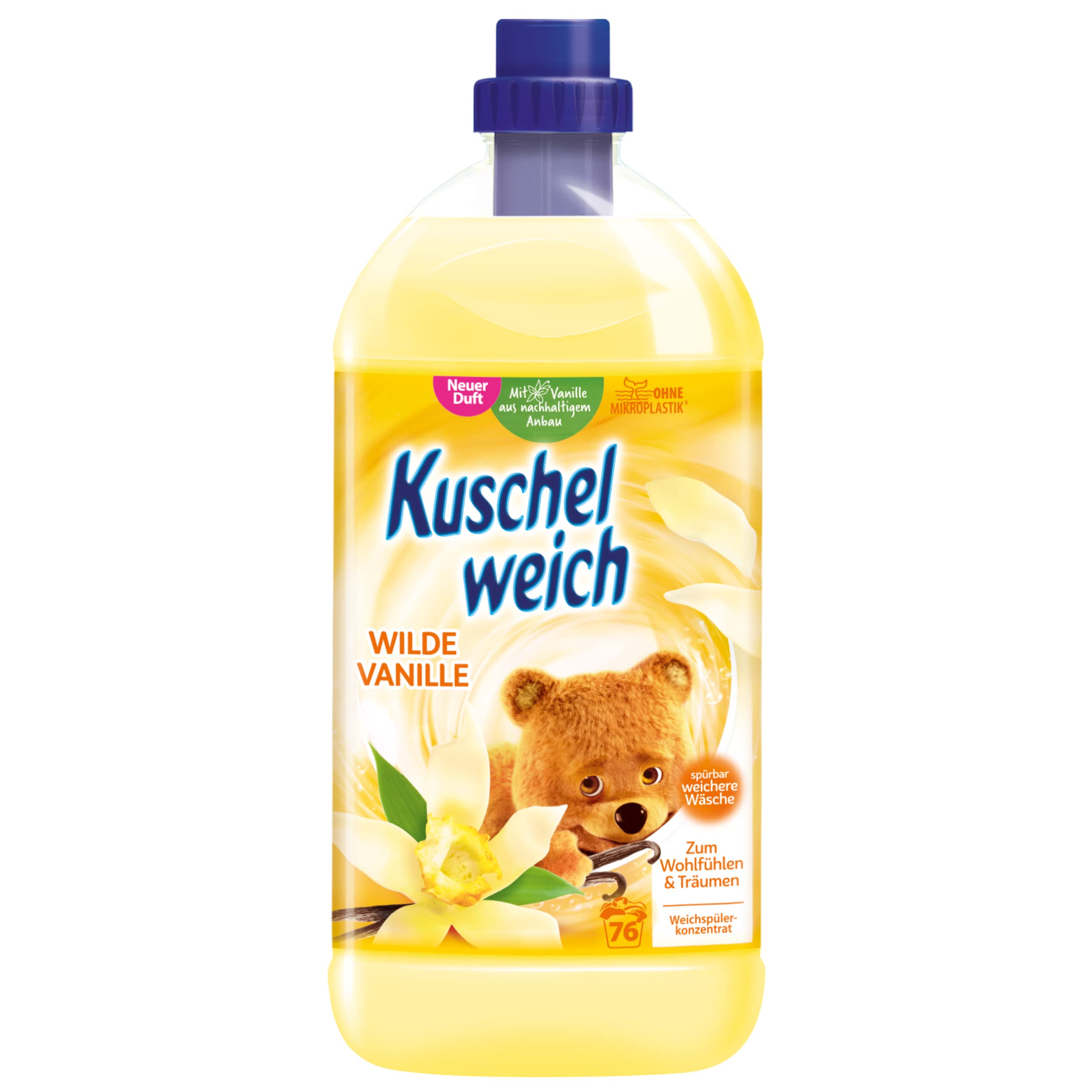 Cuddly soft fabric softener wild vanilla skin tolerance dermatologically confirmed fabric softener cuddly soft without microplastics large bottle 2 liters for up to 76 washes fabric softener summer love (2 liters)
