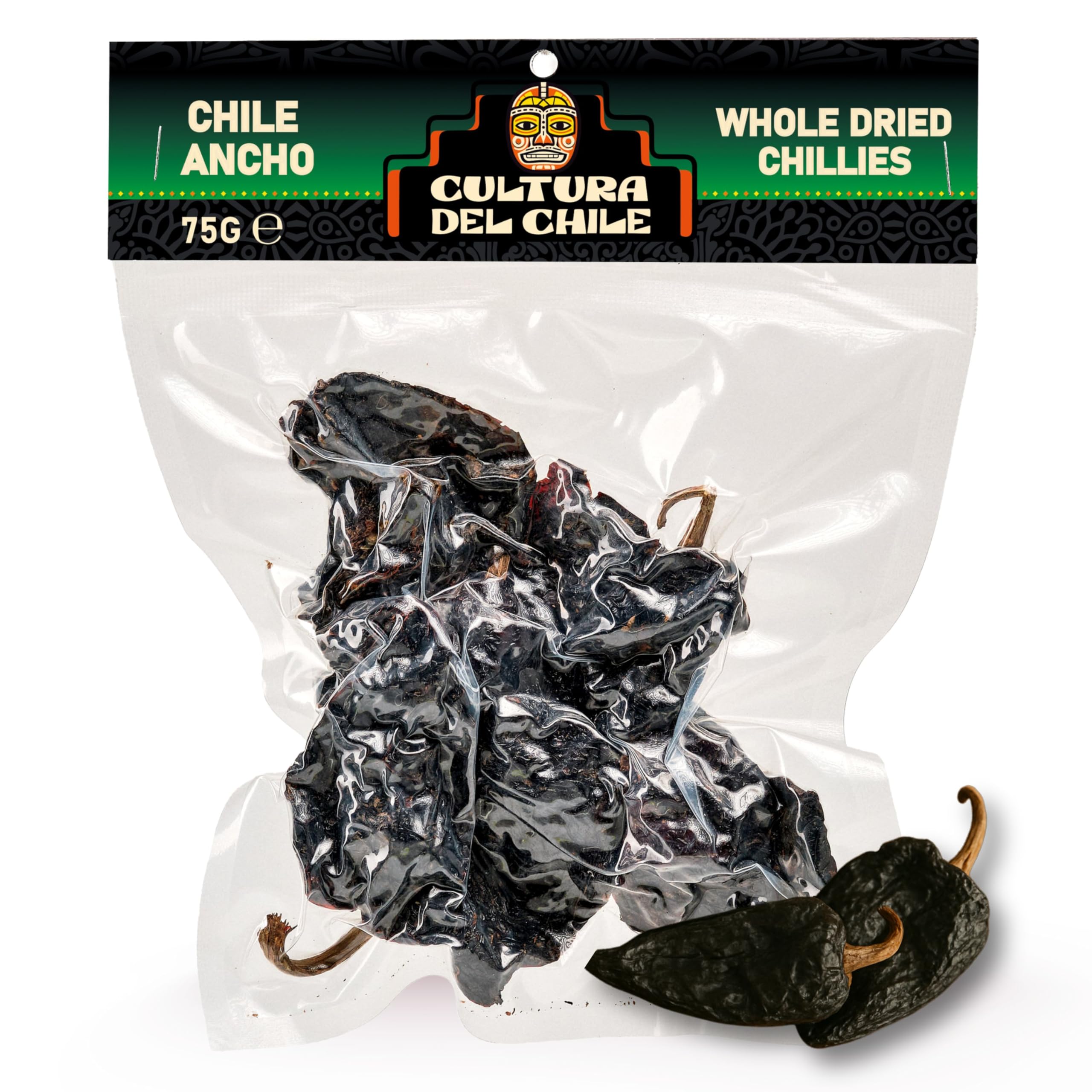 Cultura Del Chile Ancho Whole Dried Chillies 75g - All Natural Mild Heat with Smoky Fruity Flavour for Authentic Mexican Taste. Great for Bir