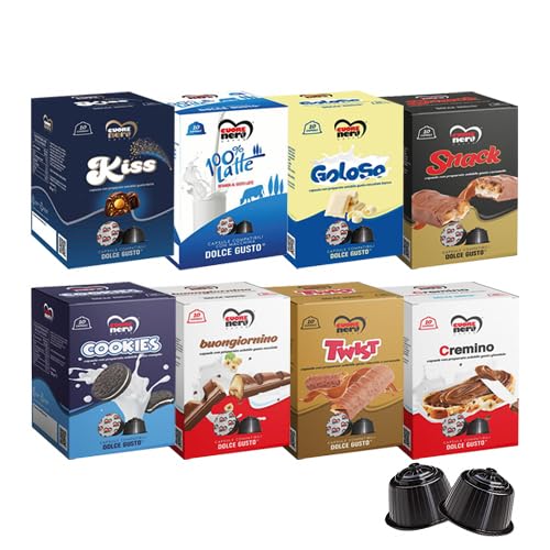 Cuore Nero Caffe Drinks - Pack of 60 (6 boxes of 10 capsules) Compatible Dolce Gusto Capsules to choose from: Mars Oreo Twixx Kinder Bueno Nutella Milk - L'Emporio del caff
