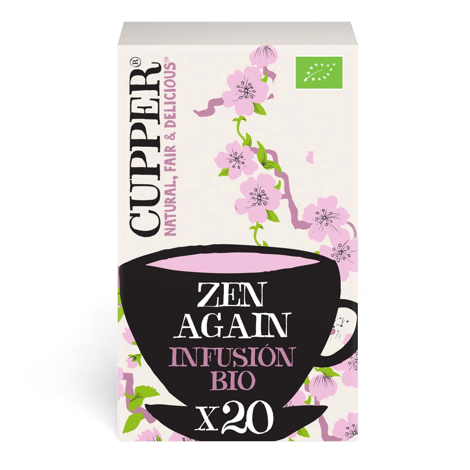 Cupper - 20 Feel Zen Eco-Friendly Infusion Bags - No Added Sugar - Suitable for Vegans. With our teas and infusions, you'll discover a new world full of special flavors and aromas that will help boost your well-being. We offer a wide variety made from natural ingredients. Our Feel Zen eco-friendly infusion is primarily made with lemongrass, eucalyptus, and ginkgo biloba. The combination of these ingredients provides a strong digestive and antioxidant effect. It also comes in convenient measuring bags. Simply heat 250 ml of water (not exceeding 100 C), insert the infusion bag, and wait 3 to 5 minutes before drinking. Don't miss the opportunity to enjoy a cup of Feel Zen! This product is suitable for vegans and should be stored in a cool, dry place away from light. Ingredients: Lemongrass (35 ), nettle, eucalyptus (20 ), rosehip, and ginkgo biloba (3 ). Allergens: Contains no egg or lactose. Contains licorice. INGREDIENTS Lemongrass 35 , nettle , eucalyptus 20 , rosehip , ginkgo biloba 3 . ( ) organically grown. INSTRUCTIONS Heat 250 ml of fresh water, not exceeding 100 C. Then, add the tea bag to the water and let it steep for 3 to 5 minutes to fully release its aroma and flavor. Perfect for breakfast! SAFETY WARNING Check ingredients. See moreCupper Infusion Zen Again, 20 sachets (Bio)DESCRIPTION DU PRODUIT DESCRIPTION DU PRODUIT Cupper - 20 sacs à infusion écologiques Feel Zen - Sans sucre ajouté - Convient pour les véganiens Avec nos thés et infusions, vous découvrirez un nouveau monde plein de saveurs et d'arômes spéciaux, qui contribueront à stimuler votre bien-être. Nous avons une grande variété élaborée à partir d'ingrédients naturels. Notre infusion écologique Feel Zen est principalement élaborée avec de l'herbe de citron, de l'eucalyptus et du gingko biloba. La combinaison de ces ingrédients vous donnera un fort effet digestif et antioxydant. En outre, il est présenté dans des enveloppes doseuses pour plus de confort. Il suffit de chauffer 250 ml d'eau (sans dépasser 100 C), d'insérer le sac d'infusion et d'attendre 3 à 5 minutes avant de boire. Ne laissez pas passer l'opportunité de prendre une tasse Feel Zen! Ce produit est adapté à la consommation végétalienne, il est recommandé de le stocker dans un endroit frais, sec et à l'abri de la lumière. Ingrédients : herbe de citron (35 ), ortie, eucalyptus (20 ), rose musquée et ginkgo biloba (3 ). allergènes : ne contient ni œuf ni lactose. Contient une réglisse INGRÉDIENTS Herbe de citron 35 , ortie , eucalypt 20 , rose musquée , ginko biloba 3 . ( ) culture biologique. MODE D'EMPLOI Chauffez 250 ml d'eau fraîche, sans dépasser 100 C. Ensuite, versez le sachet de thé à l'intérieur de l'eau et laissez infuser 3 à 5 minutes pour qu'il dégage tout son arôme et son goût. Idéal pour le petit déjeuner ! AVERTISSEMENT DE SÉCURITÉ Vérifiez les ingrédients. Voir plus