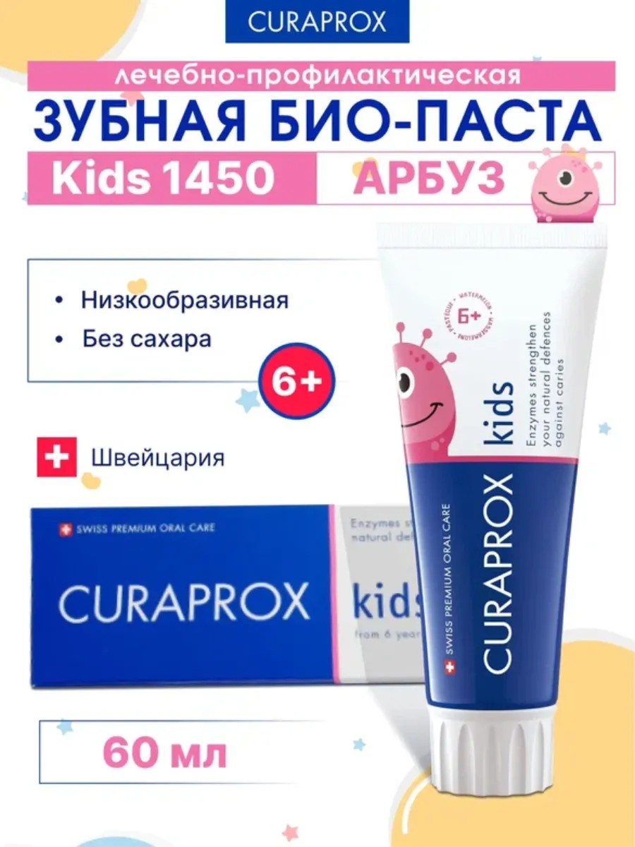 Curaprox Детская зубная паста 6+ с фтором Kids 1450, арбуз