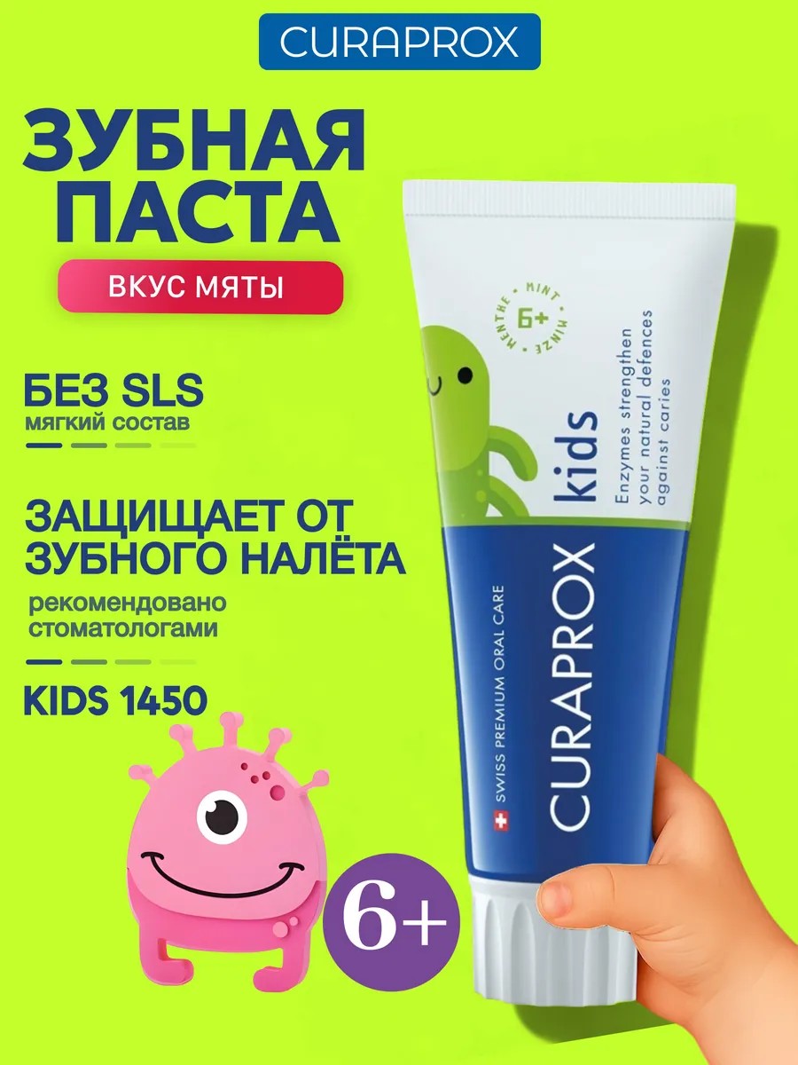 Зубная паста Curaprox Kids 1450 со вкусом мяты - это безопасное и эффективное средство для гигиены зубов. Она содержит в составе фториды 1450 ppm, что делает ее идеальным выбором для борьбы с кариесом и защиты зубов от разрушения.
