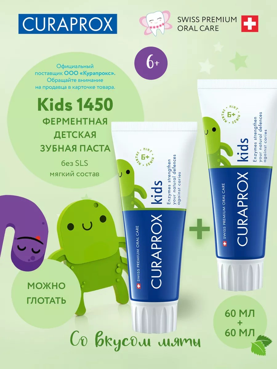 Зубная паста Curaprox Kids 1450 со вкусом мяты - это безопасное и эффективное средство для гигиены зубов. Она содержит в составе фториды 1450 ppm, что делает ее идеальным выбором для борьбы с кариесом и защиты зубов от разрушения.