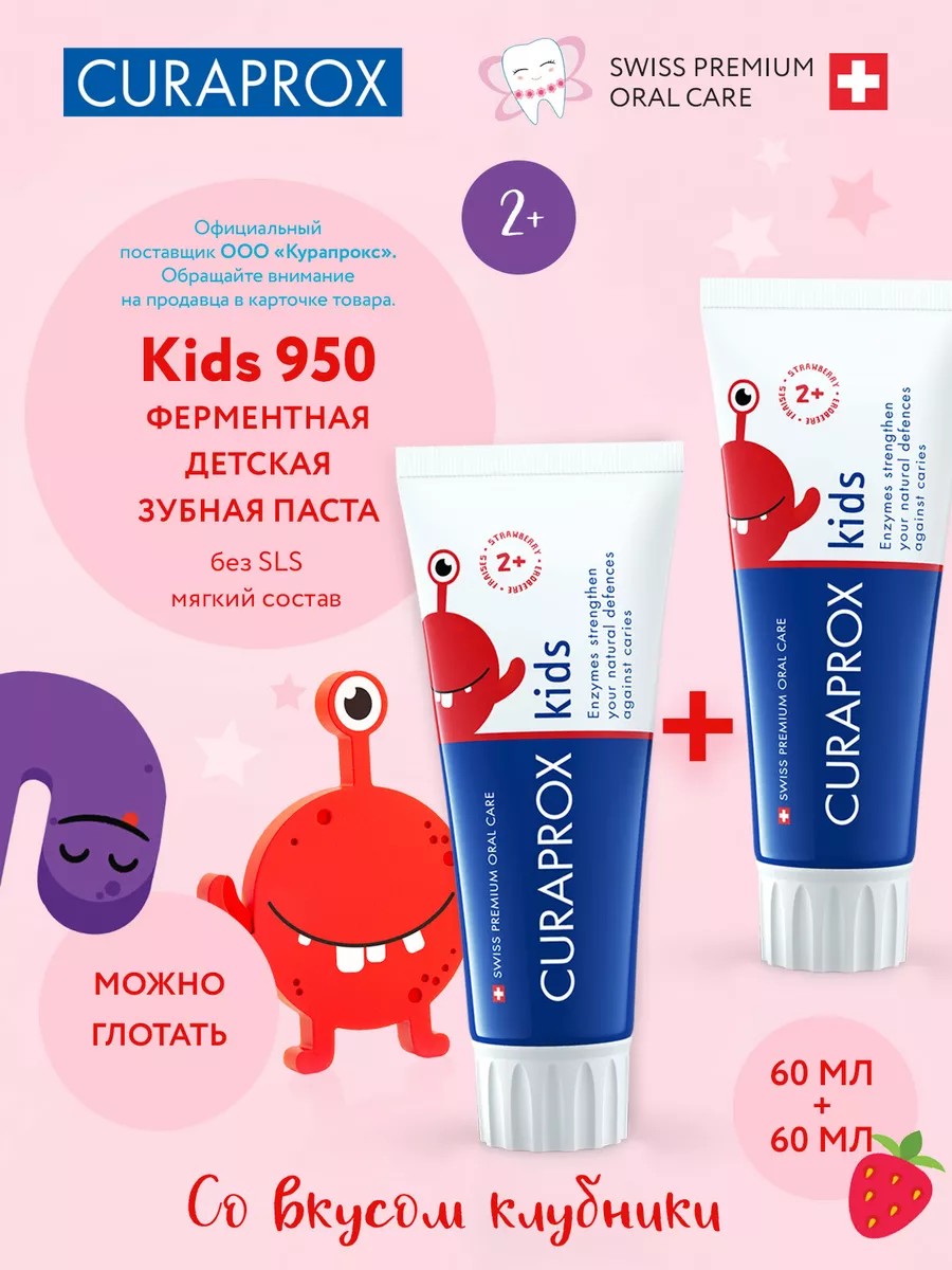 Curaprox Зубная паста Kids 950 с фтором со вкусом клубники, набор