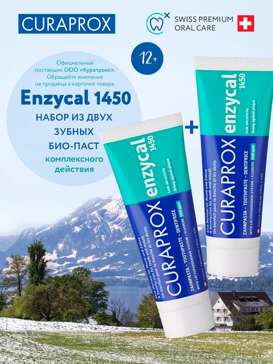 Curaprox Зубная паста набор Enzycal 1450 ppm 12+ 75 мл + 75 мл