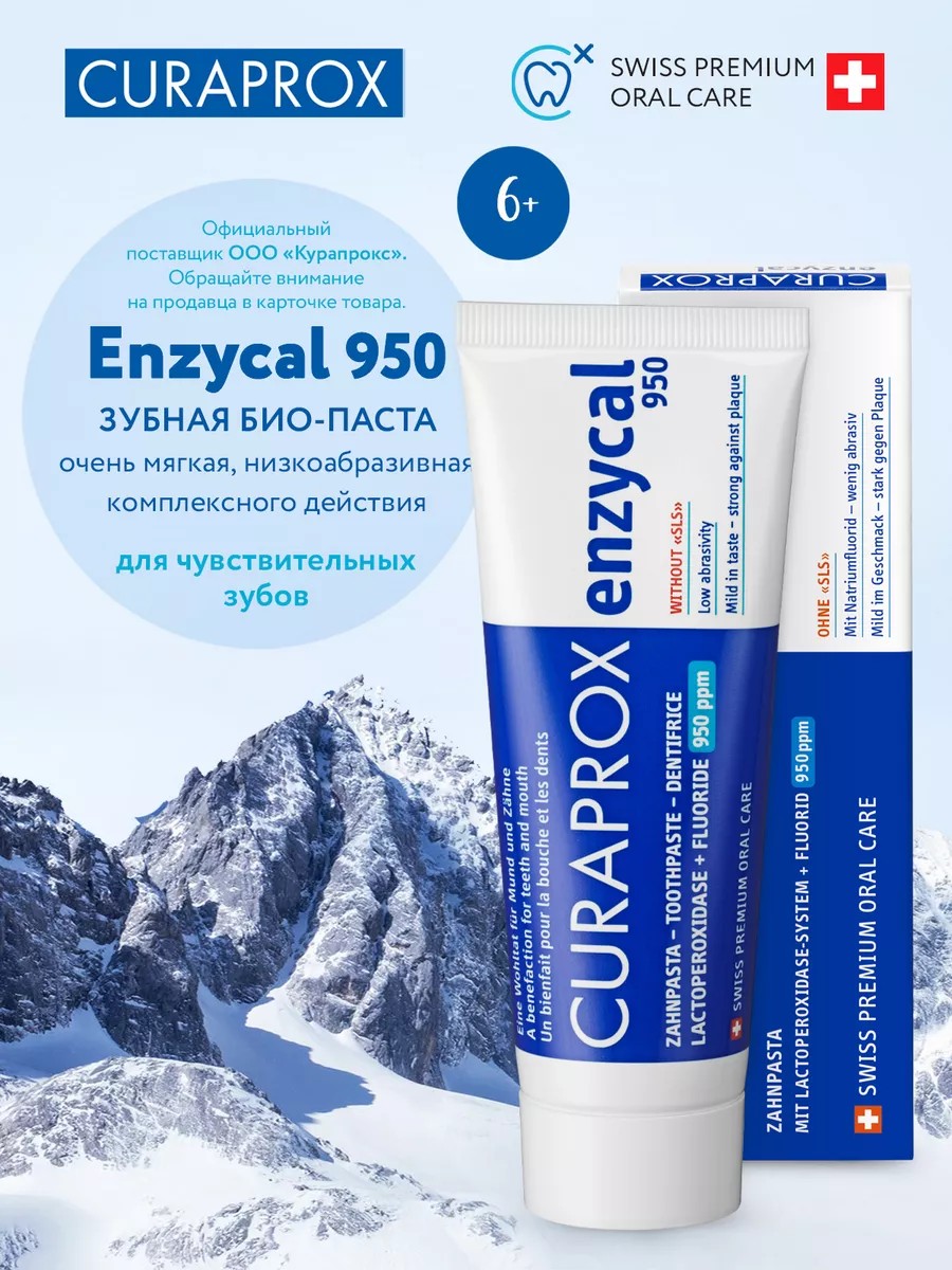 Curaprox Зубная паста с фтором Enzycal 950 ppm 6+ 75 мл