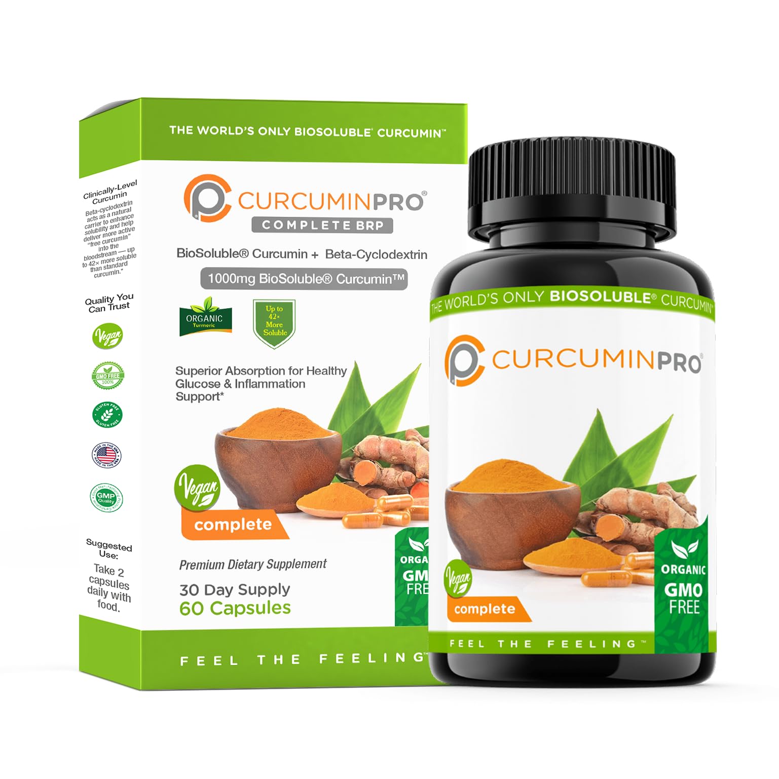 CurcuminPro Complete Vegan | BioSoluble Brown Rice Protein & Organic Turmeric Curcumin Supplement | Plant-Based Formula for Daily Wellness | 60 Count