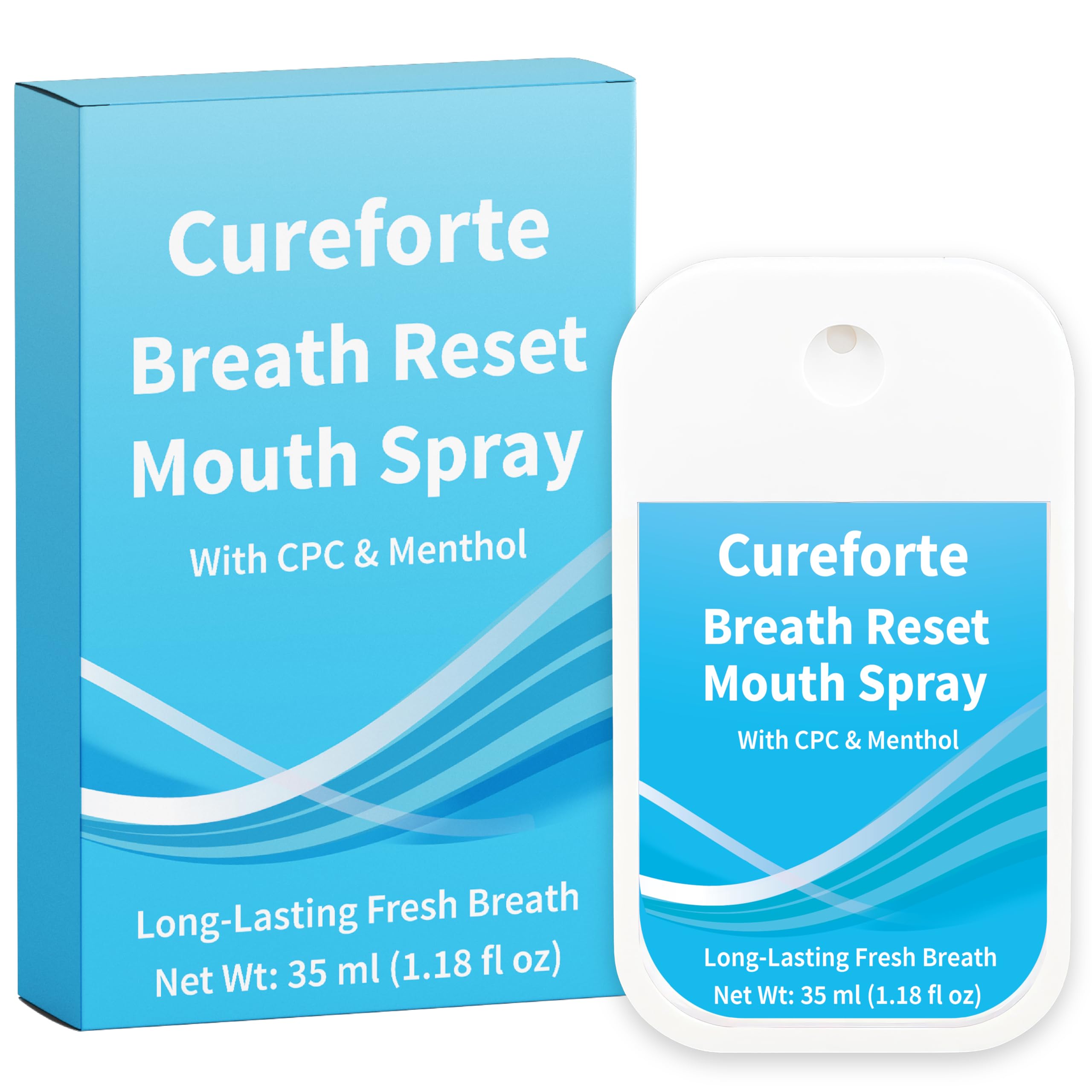 Cureforte Breath Reset Mouth Spray Fresh Breath & Oral Care with Glycerin & Aloe Kills Germs & Becteria Reduces Plaque Relieves Dry Mouth 1.18 Fl Oz
